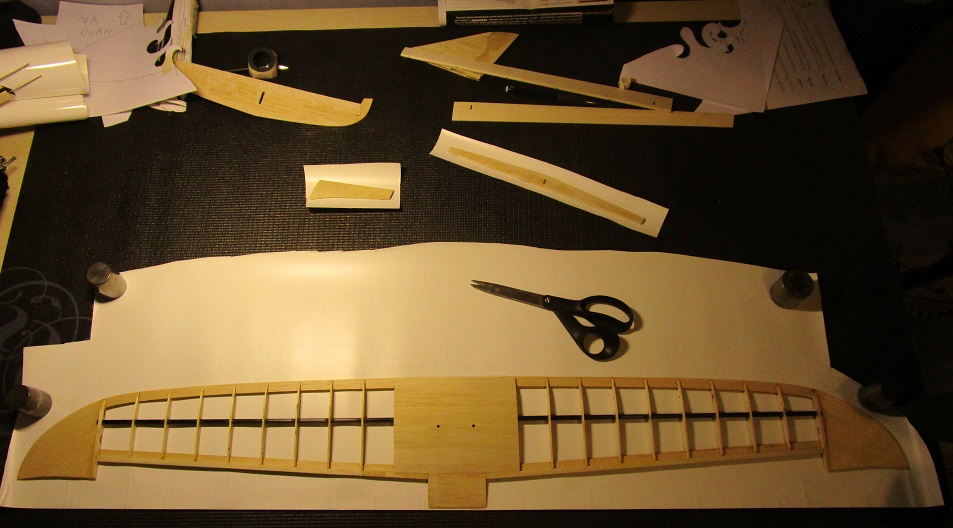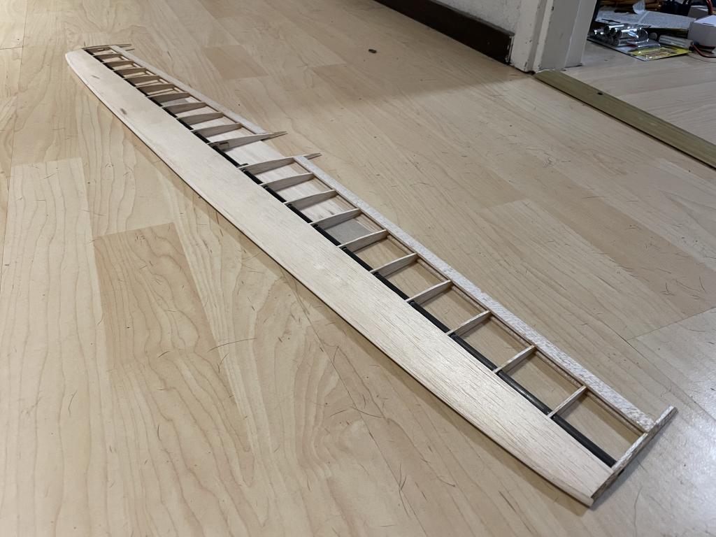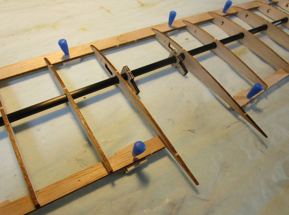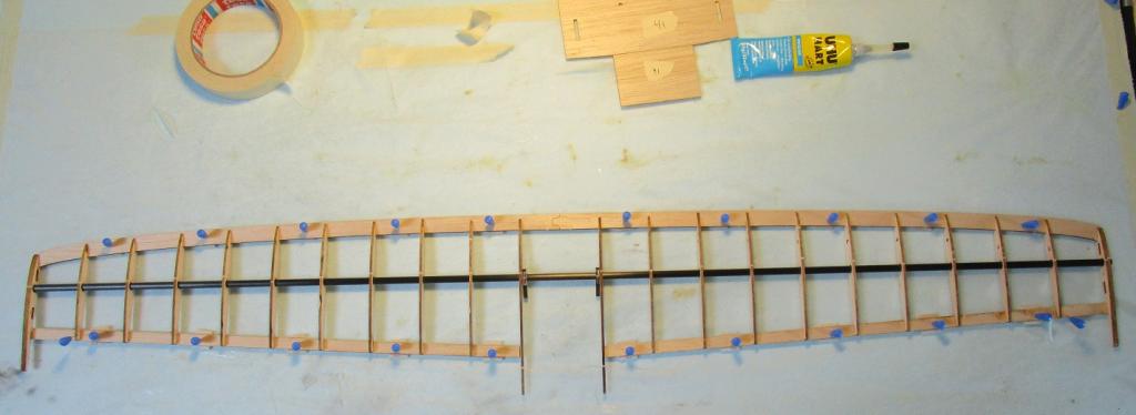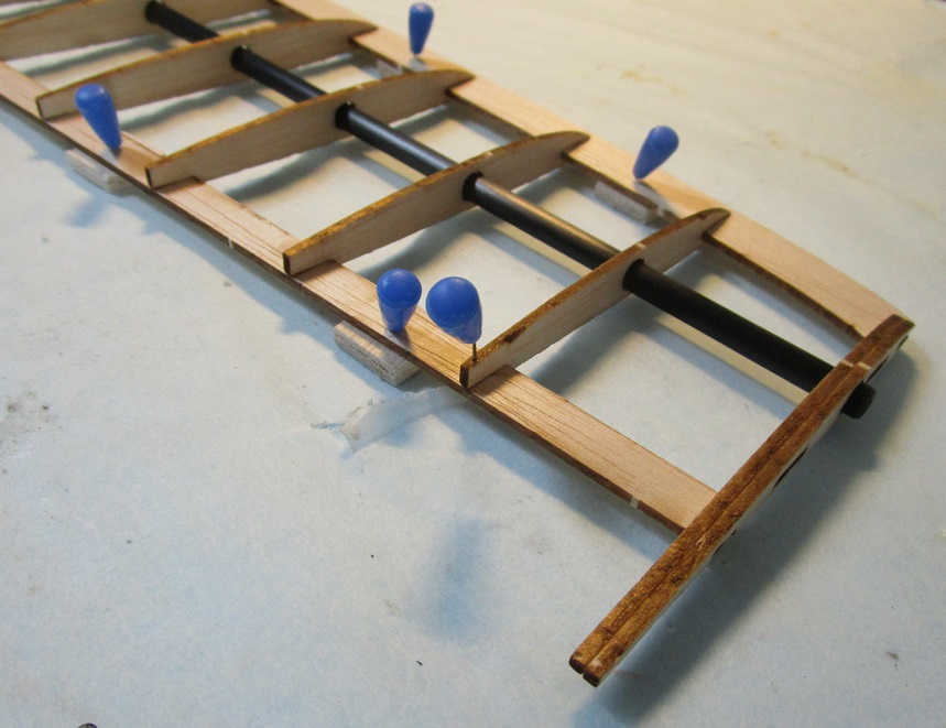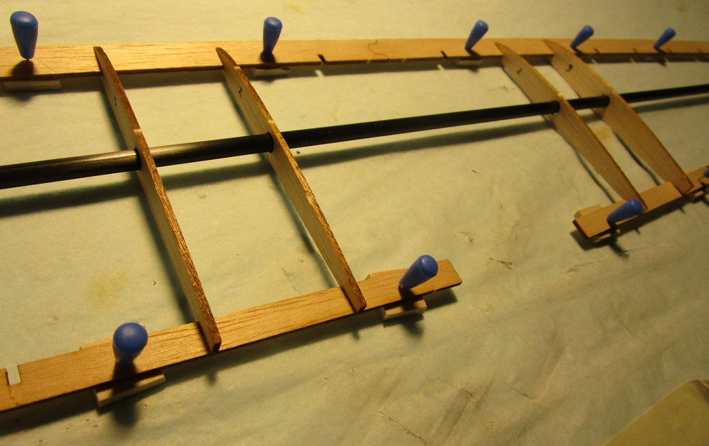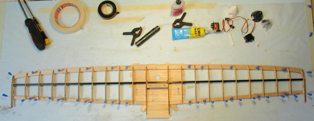Placerade ut vingens fram- och bakkant uppe på lite småbitar som rekommenderats för att få rätt höjd