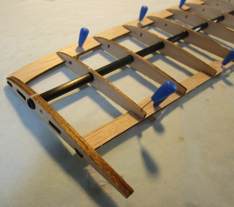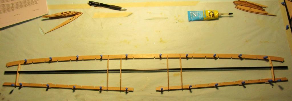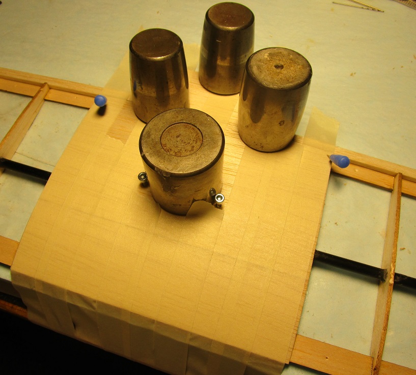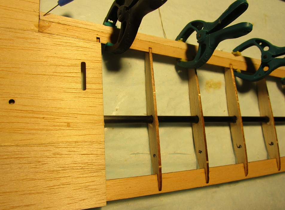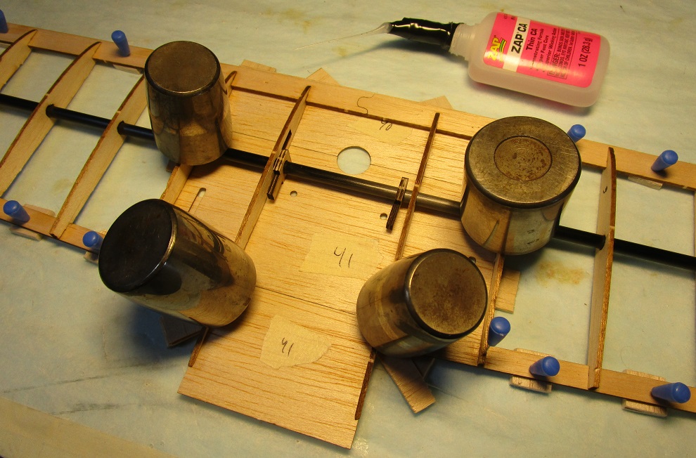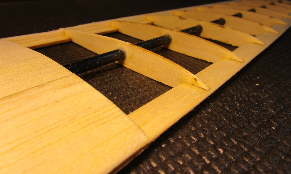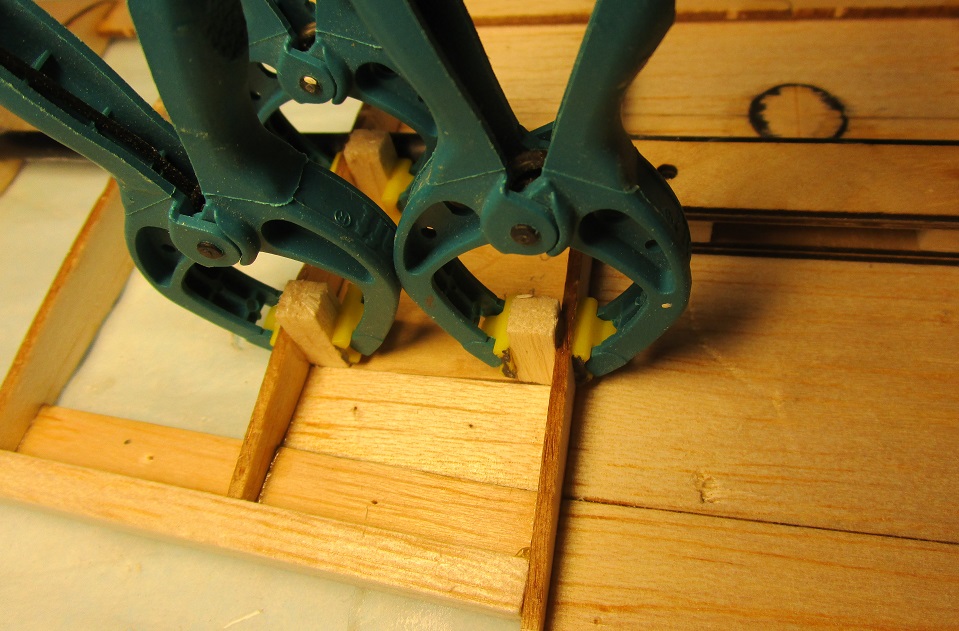 Placerade ut vingens fram- och bakkant uppe på lite småbitar som rekommenderats för att få rätt höjd