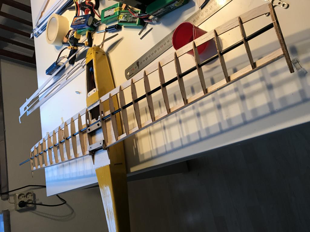 får imma framkant spryglarna först för att sedan föra genom vingröret och sen försöka stadga upp allt med resterande delar För att inte få ett parallellogram av vingen! Var väääääldiigt bökigt att försöka pilla in spyglarna i framkantslisten när vingröret satt på plats..!
