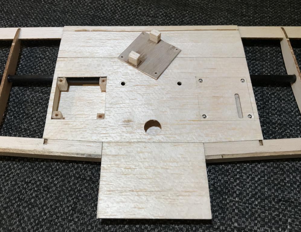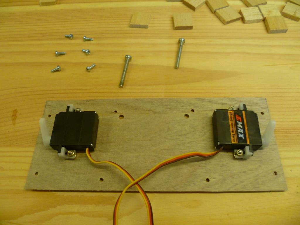 Servona fastskruvade på luckans undersida. Luckan fastskruvad och servoarmarna sticker ut.:thumbup: