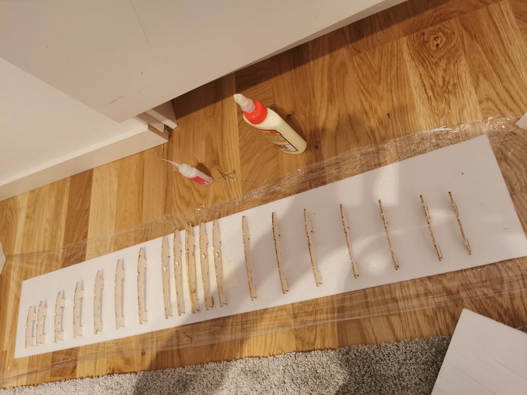Har skaffat en flaska Titebond trälim och beställt lite byggnålar. Nästa inköp är väl någon form av byggbräda som nålarna kan fastna i.