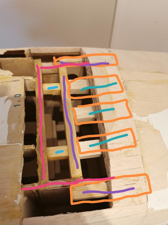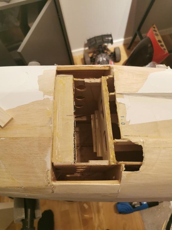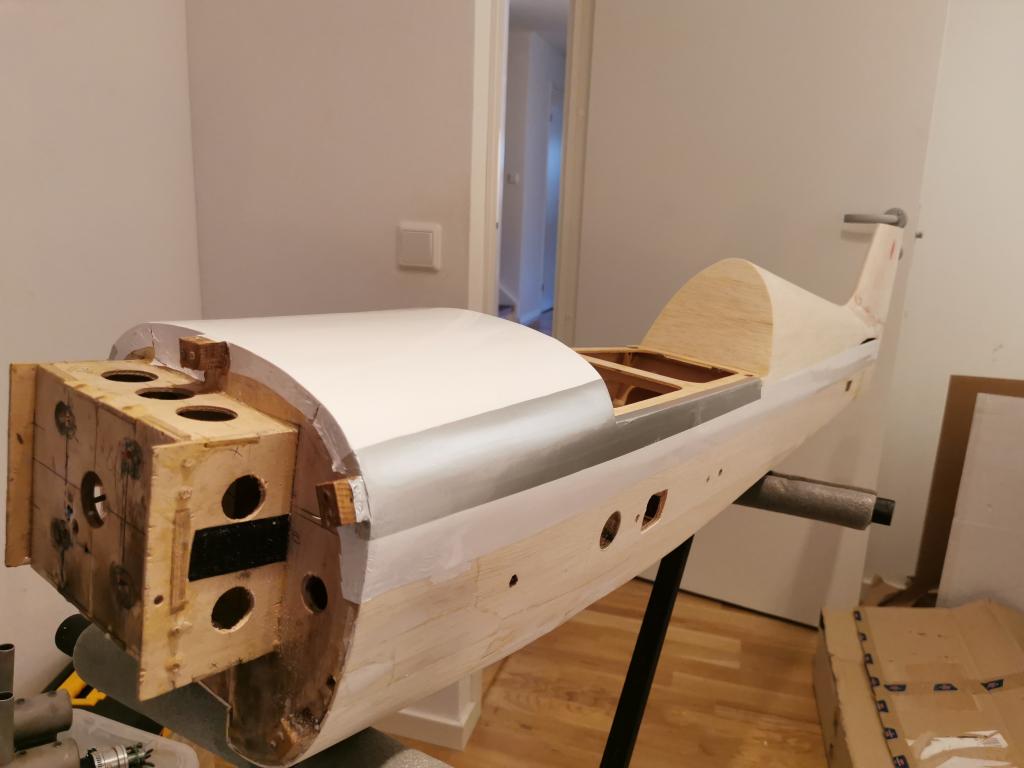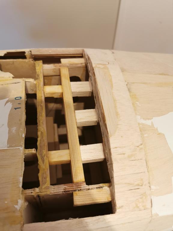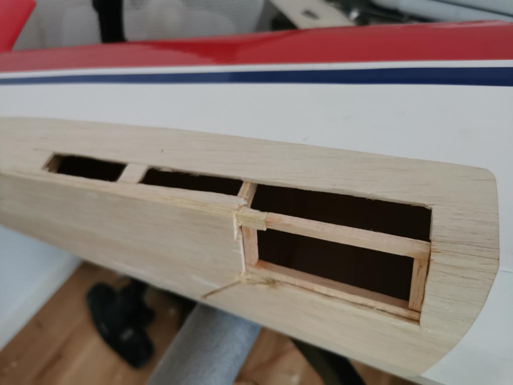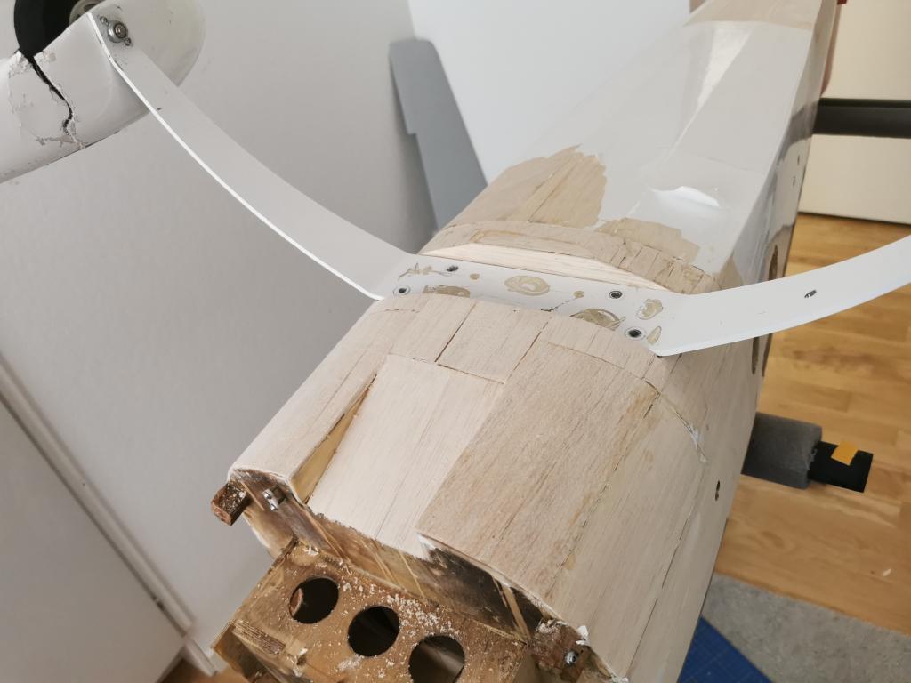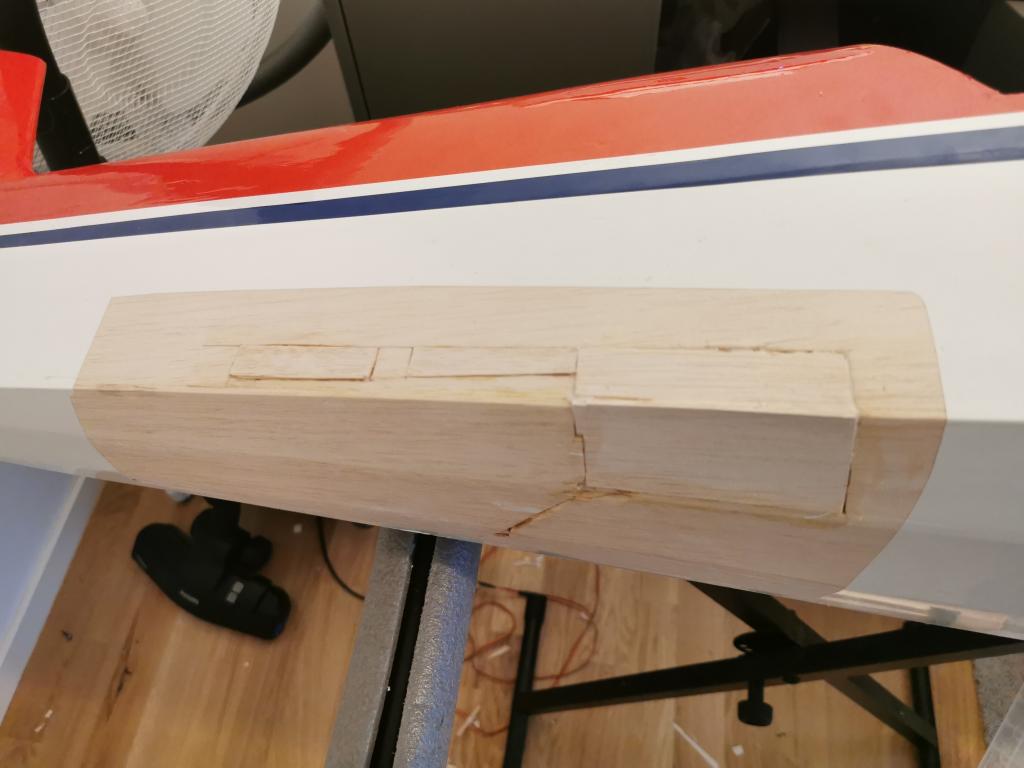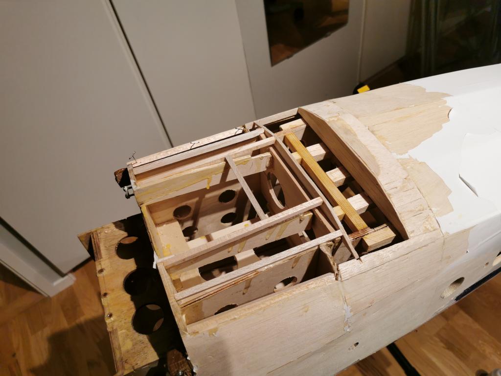 För att sedan förlänga plankningen och limma in lite furustavar och "hård" balsa med 30min epoxy.