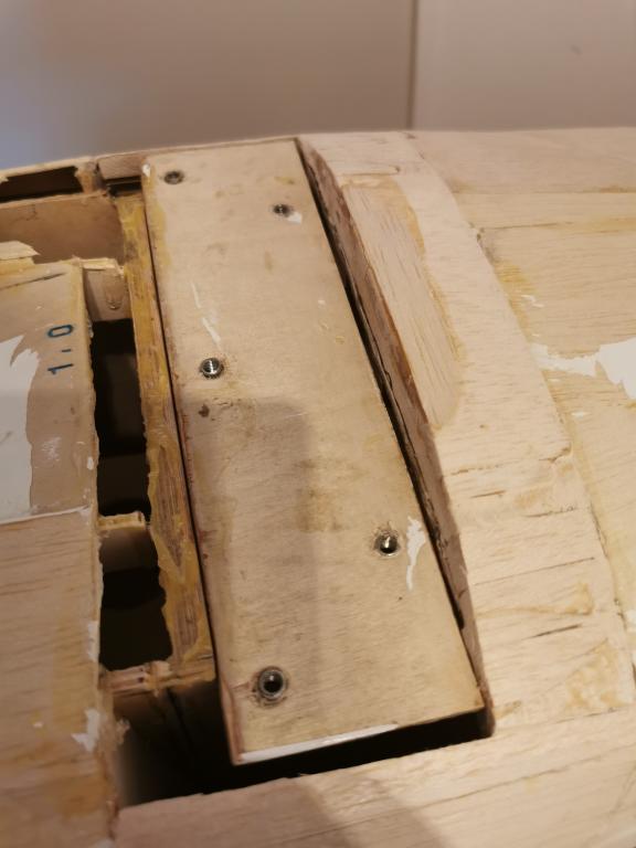 Plattan som landningsstället skruvas fast i limmades på plats med 30 min epoxy och skruvades även fast i "regelverket" som jag limmat dit tidigare.