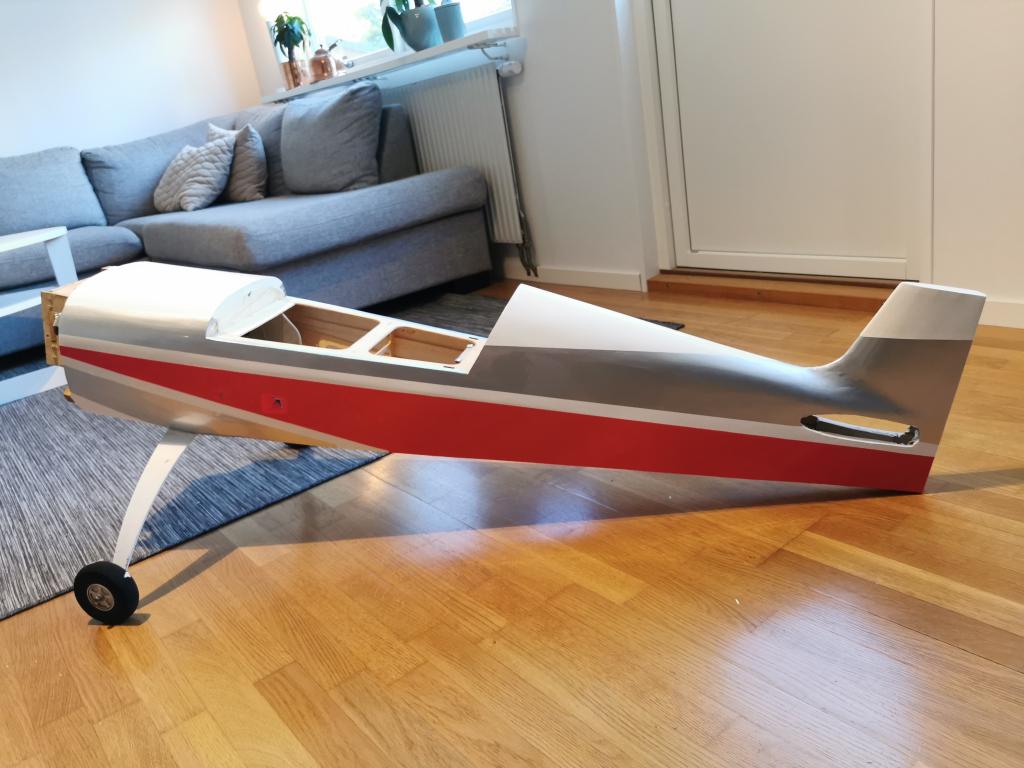 Jag inledde detta projekt den 25e augusti, så ca 2 månader senare och här är jag nu. Det som återstår är att klä skevroder, laga och måla motorkåpa samt måla om cockpit.