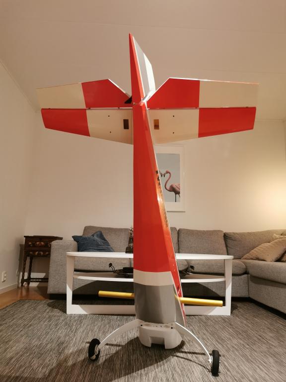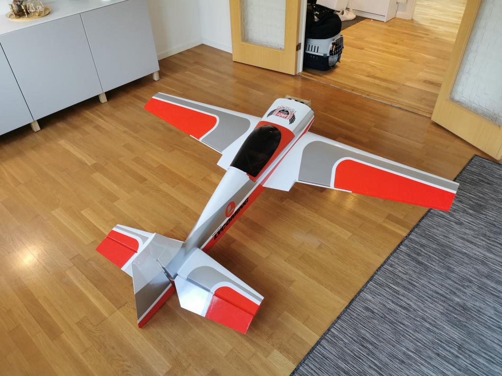 Klädseln togs av och det blev dags för en ny kostym åt kärran. Jag har alltid gillat utséendet på Hangar 9s extra 300, så jag valde att försöka efterlikna den så gott jag kunde.