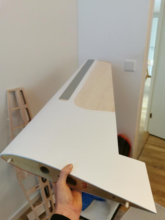Varför inte klä den med film. Enkelt och snyggt blir det. Jag delade en GP, PW Extra 300 på mitten vid ett motorstopp för ganska många år sedan. Lagade den och klädde åter med plastfilm. Tror det var monocote. Den flyger i min ägo ännu idag och filmen sitter kvar.