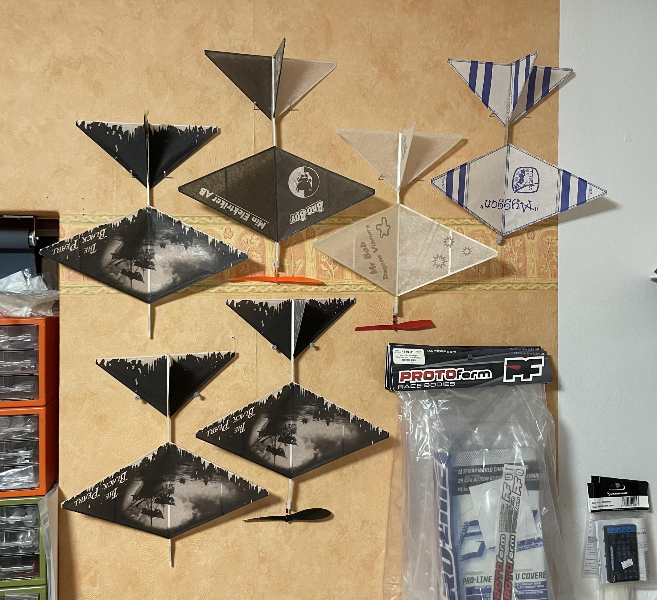 Flugorna väger mellan 5.5-5.9g inkl gummibränsle!