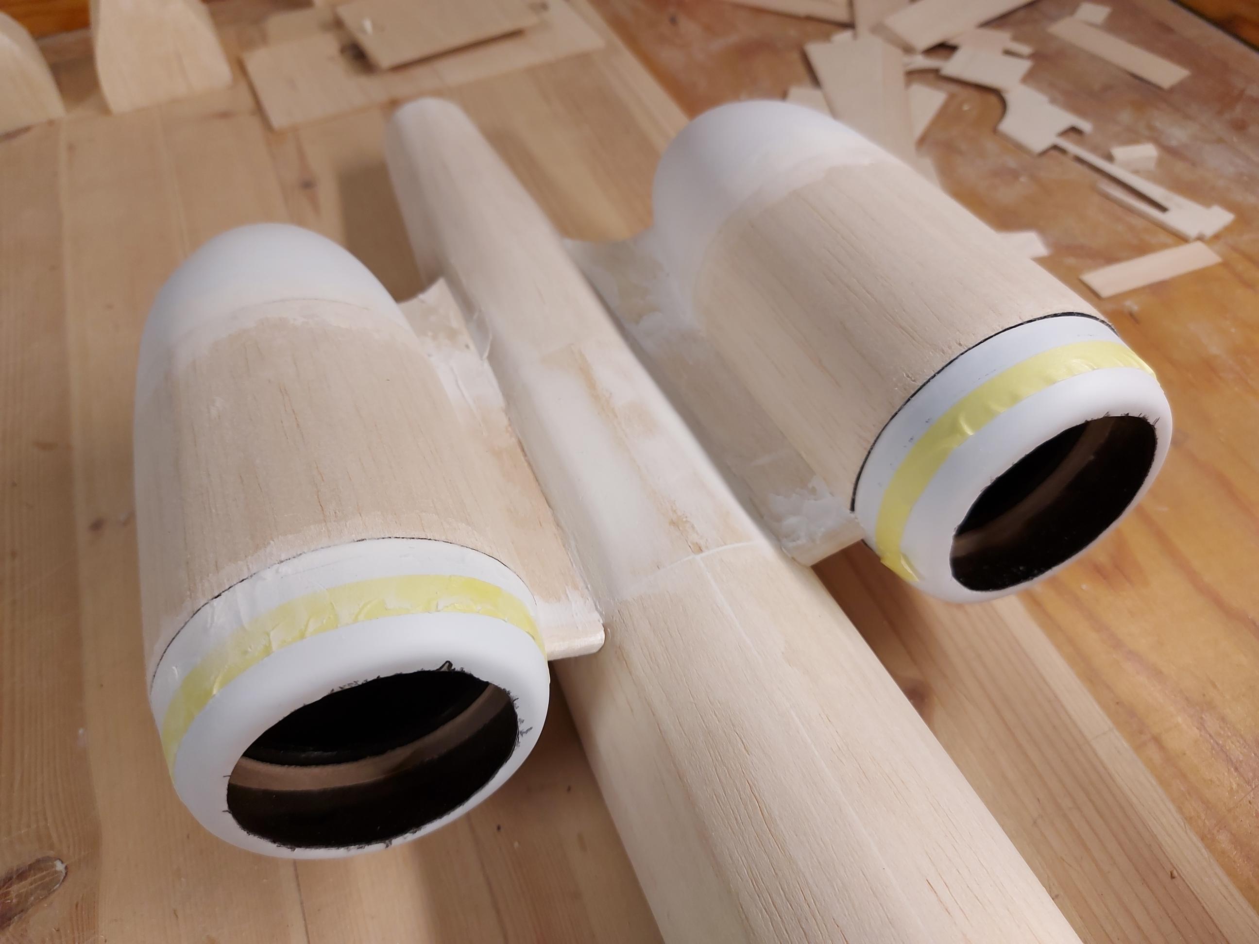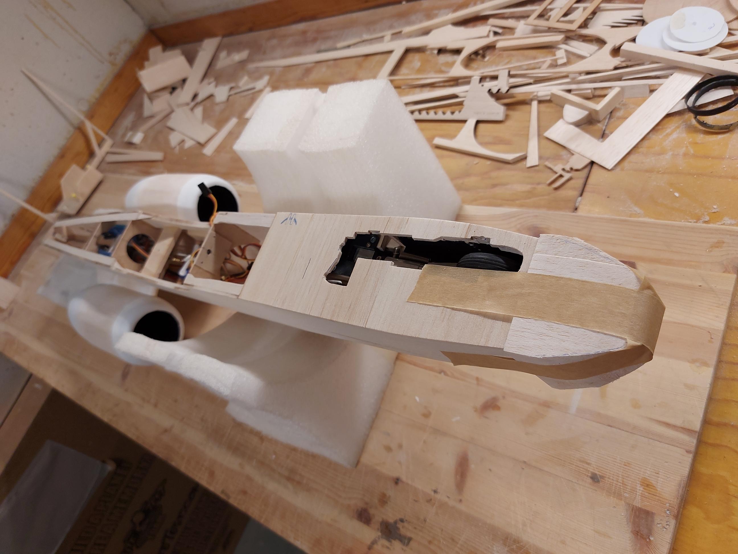 Ett spännande projekt!Tackar. Bra tanke. Har varit lite inne på det. Blir ju väldigt stötkänslig yta utan glasfiber, men sparar å andra sidan in en hel del vikt (tex så behövs det ju en hel del spackel för att släta till glasfiberytan, och sprayspackel är ju inte så lätt). Kanske skulle jag glasa kroppen, men inte vingarna?