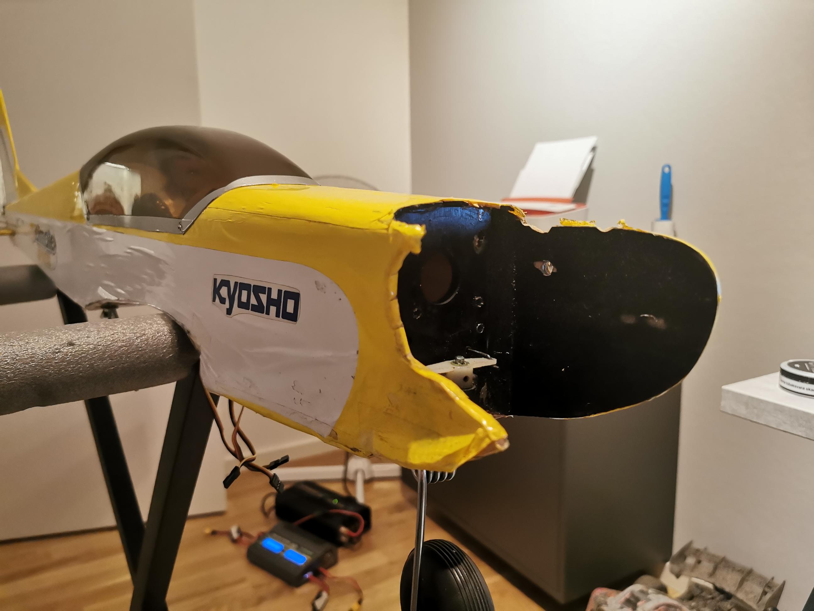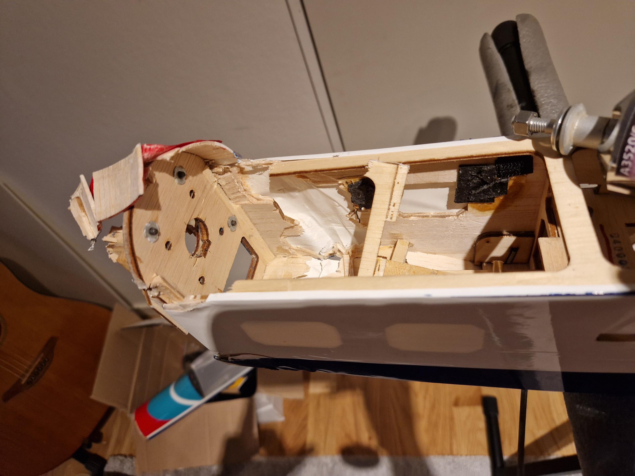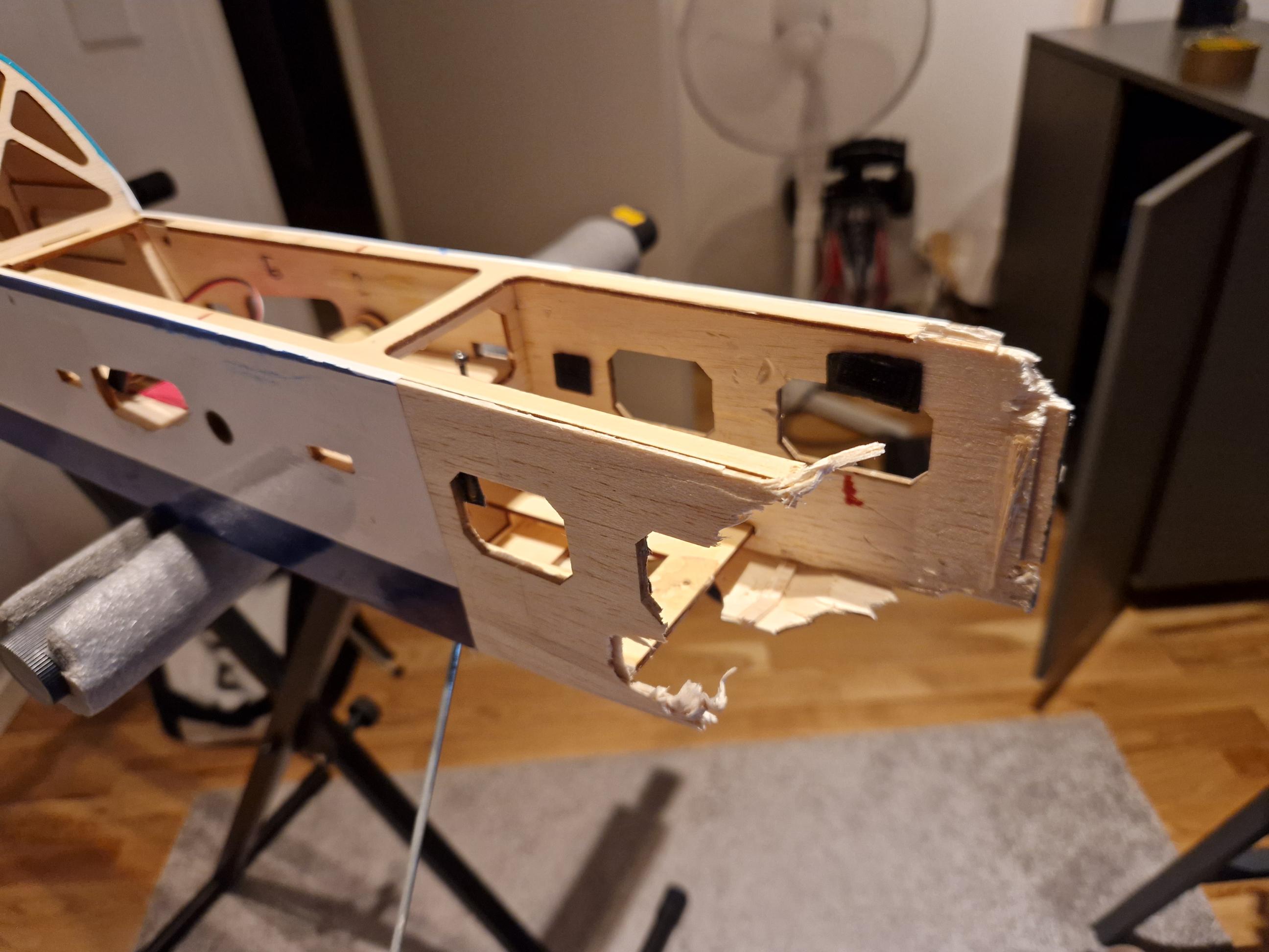 Jag sänkte ner två remsor plywood för att öka på styrkan på stabben. Min lagning har fungerat fint, planet har otaliga flygningar sedan denna reparation.