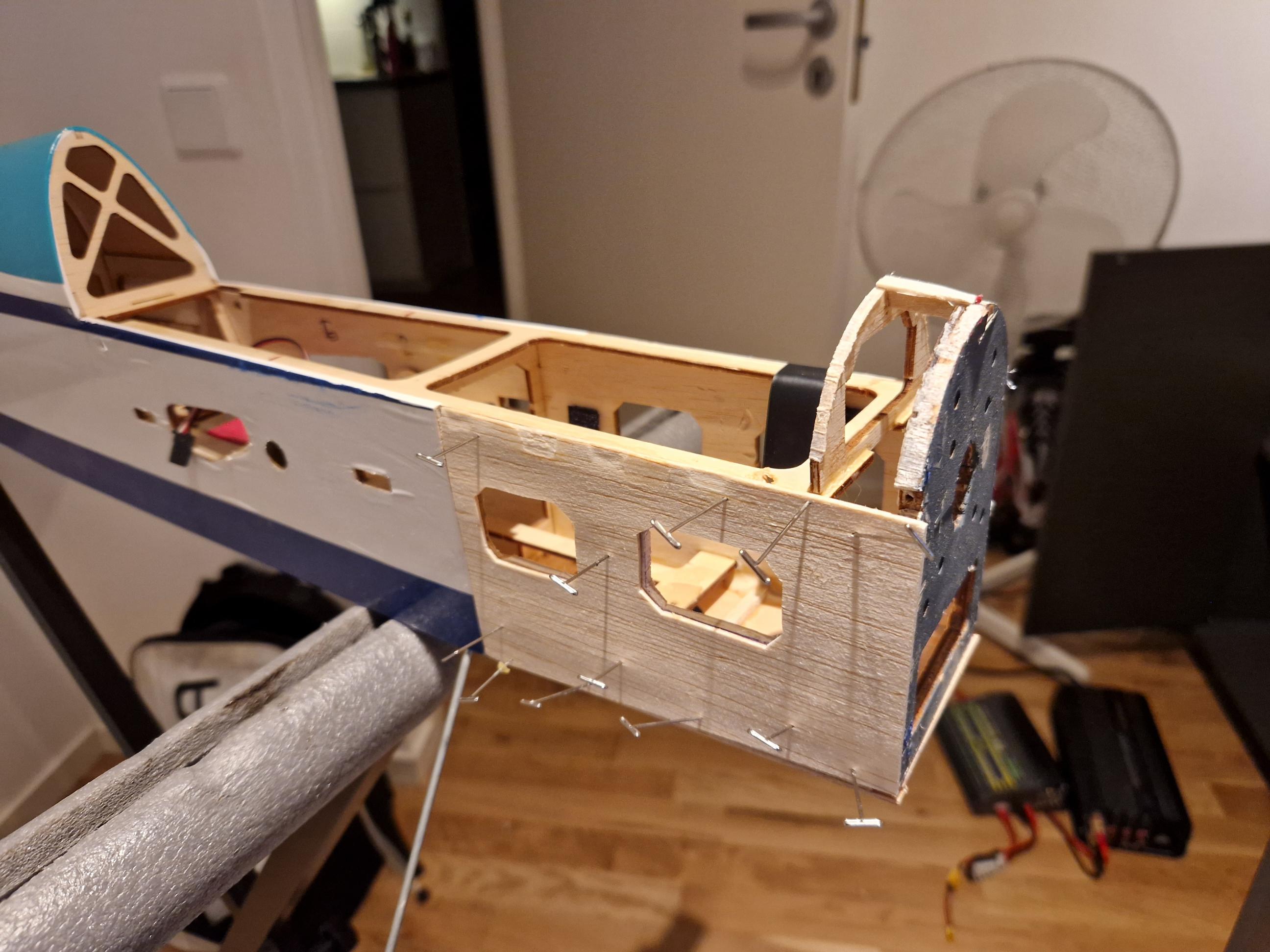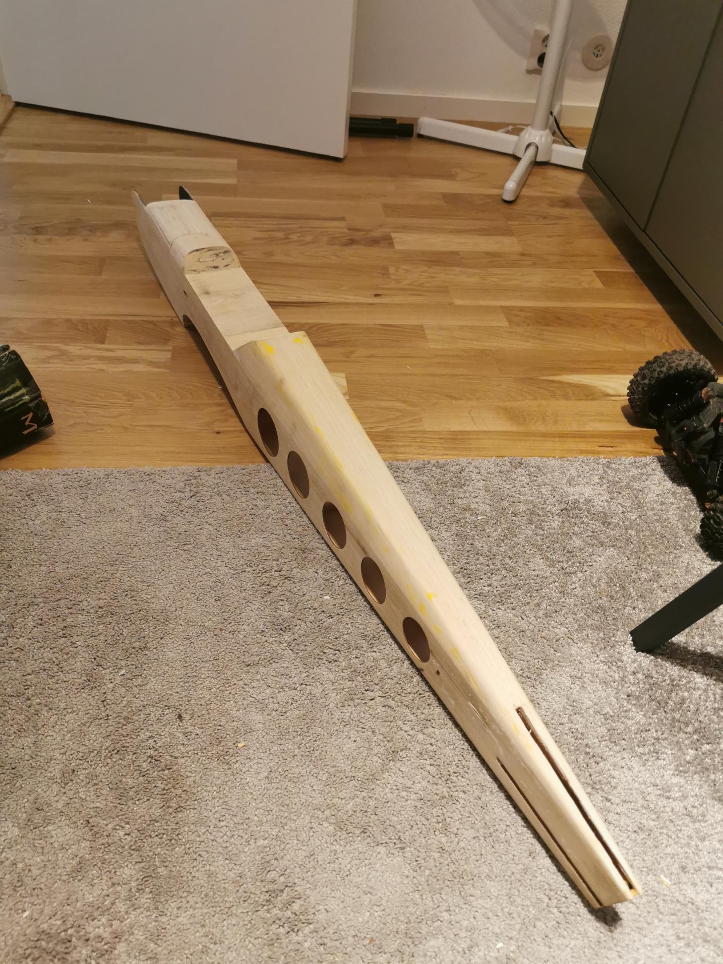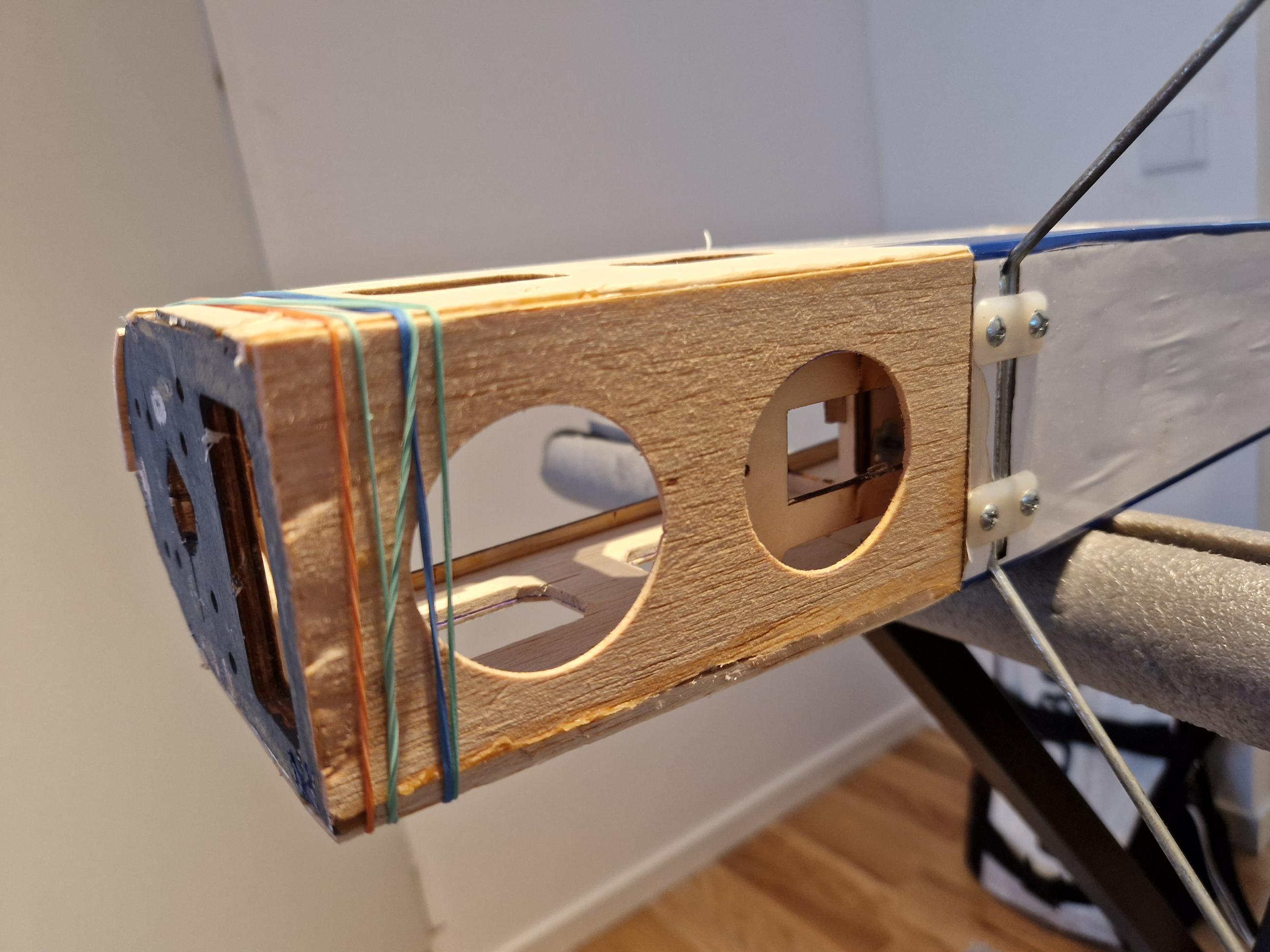Jag sänkte ner två remsor plywood för att öka på styrkan på stabben. Min lagning har fungerat fint, planet har otaliga flygningar sedan denna reparation.