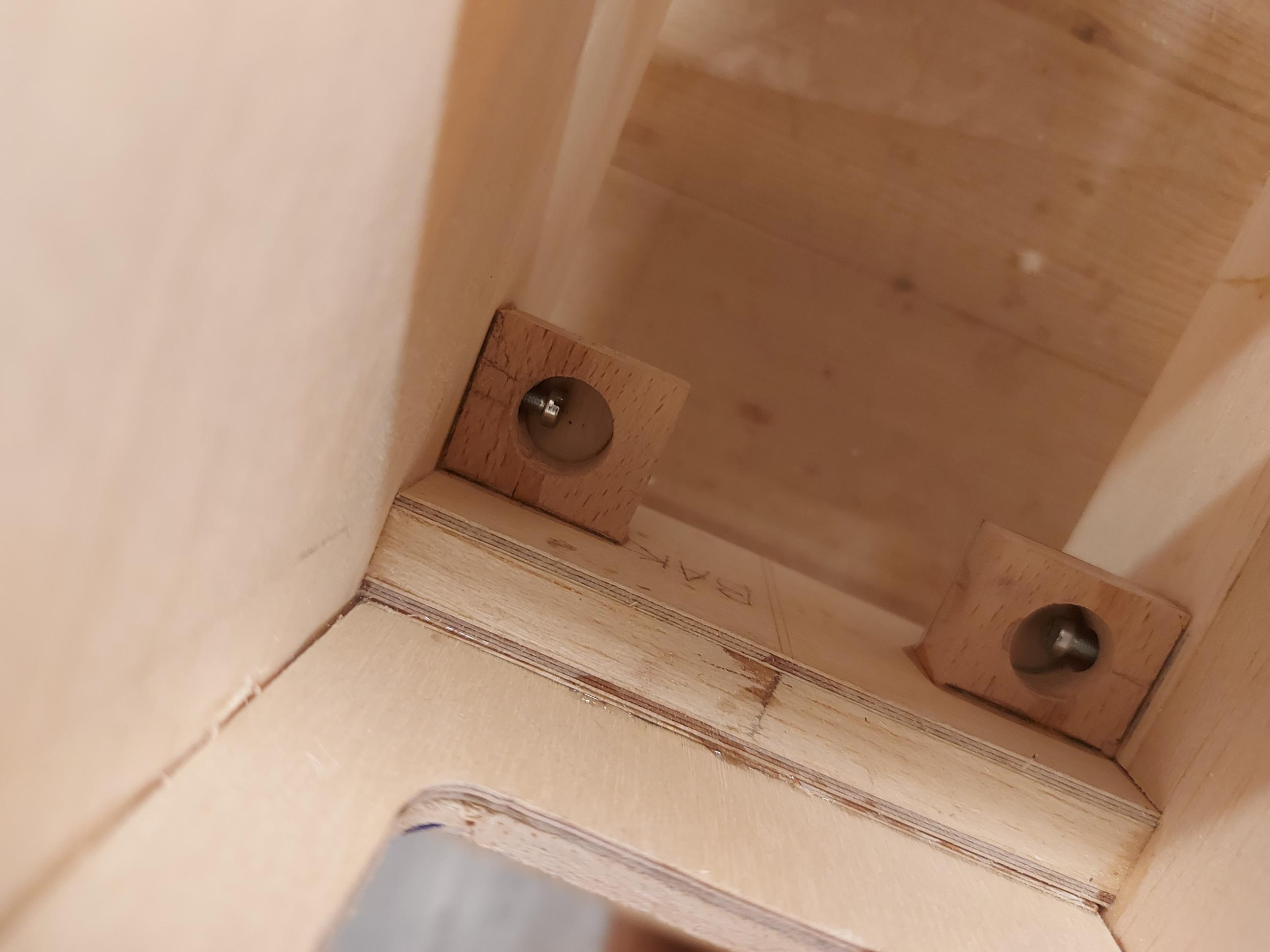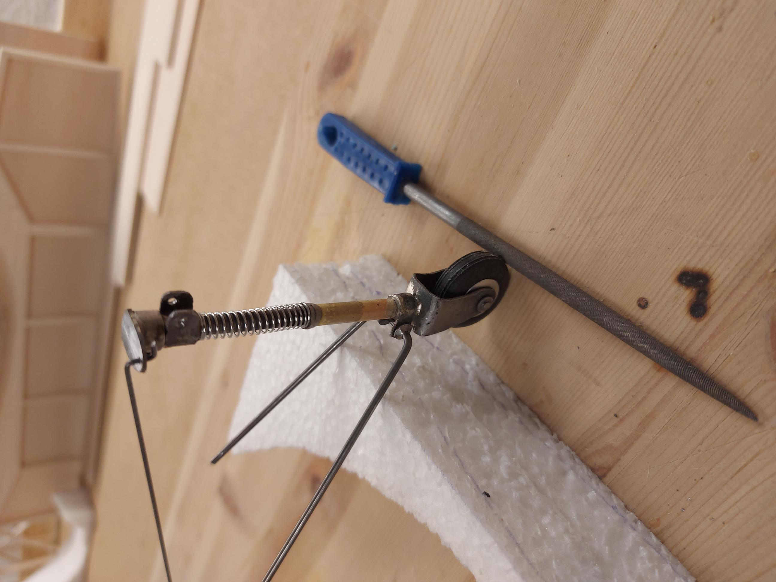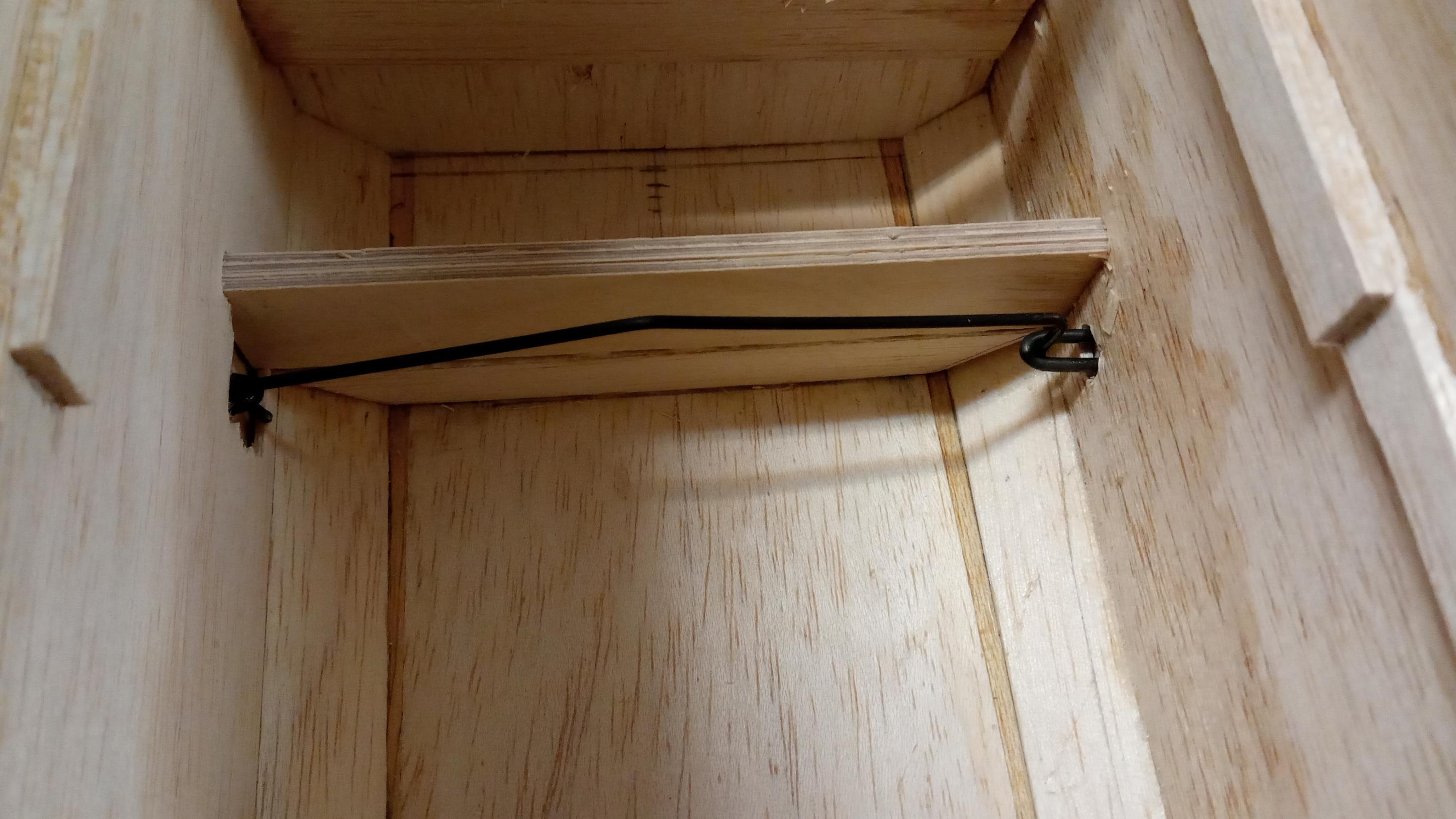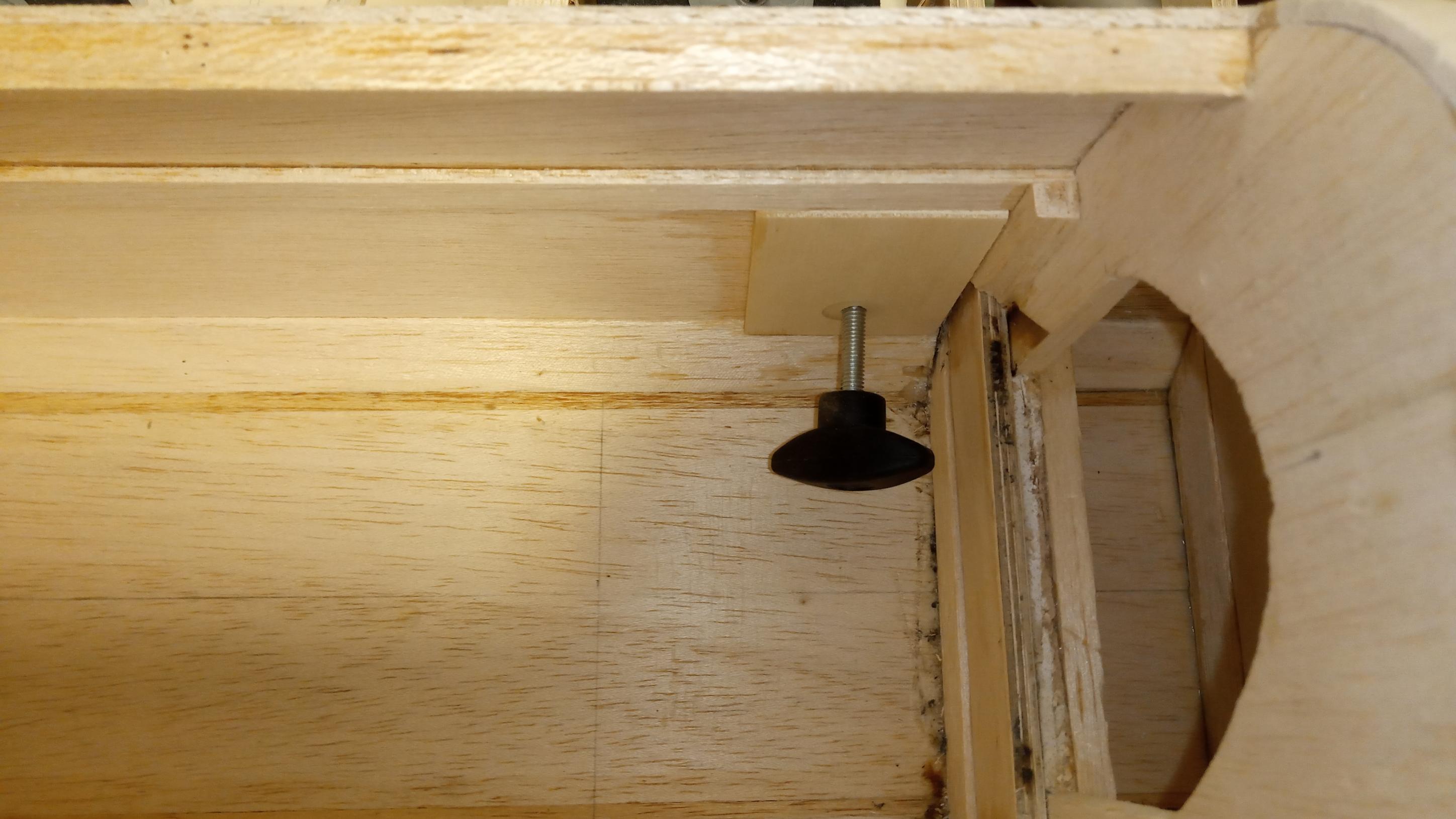 Sen låste jag vingen med en fjädrande pianotråd i bakkant, plus en skruv i framkant.