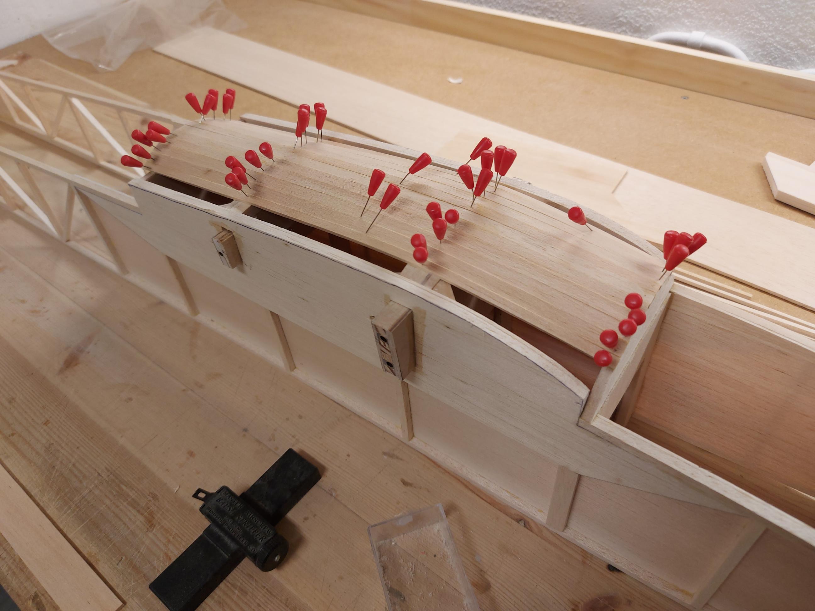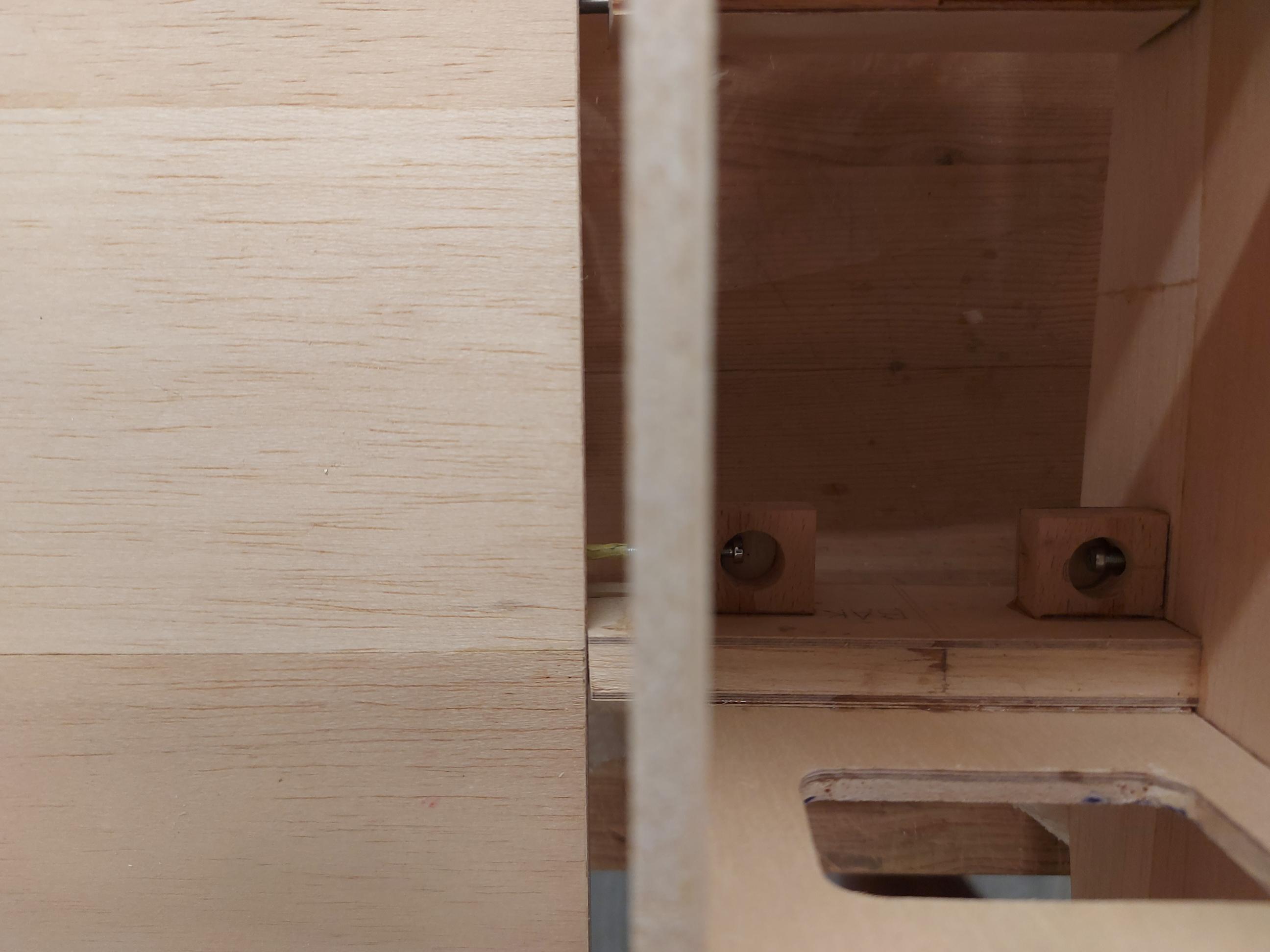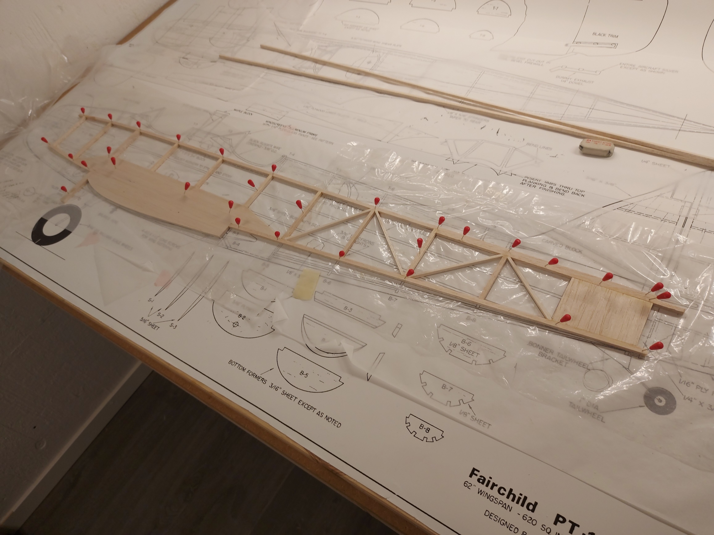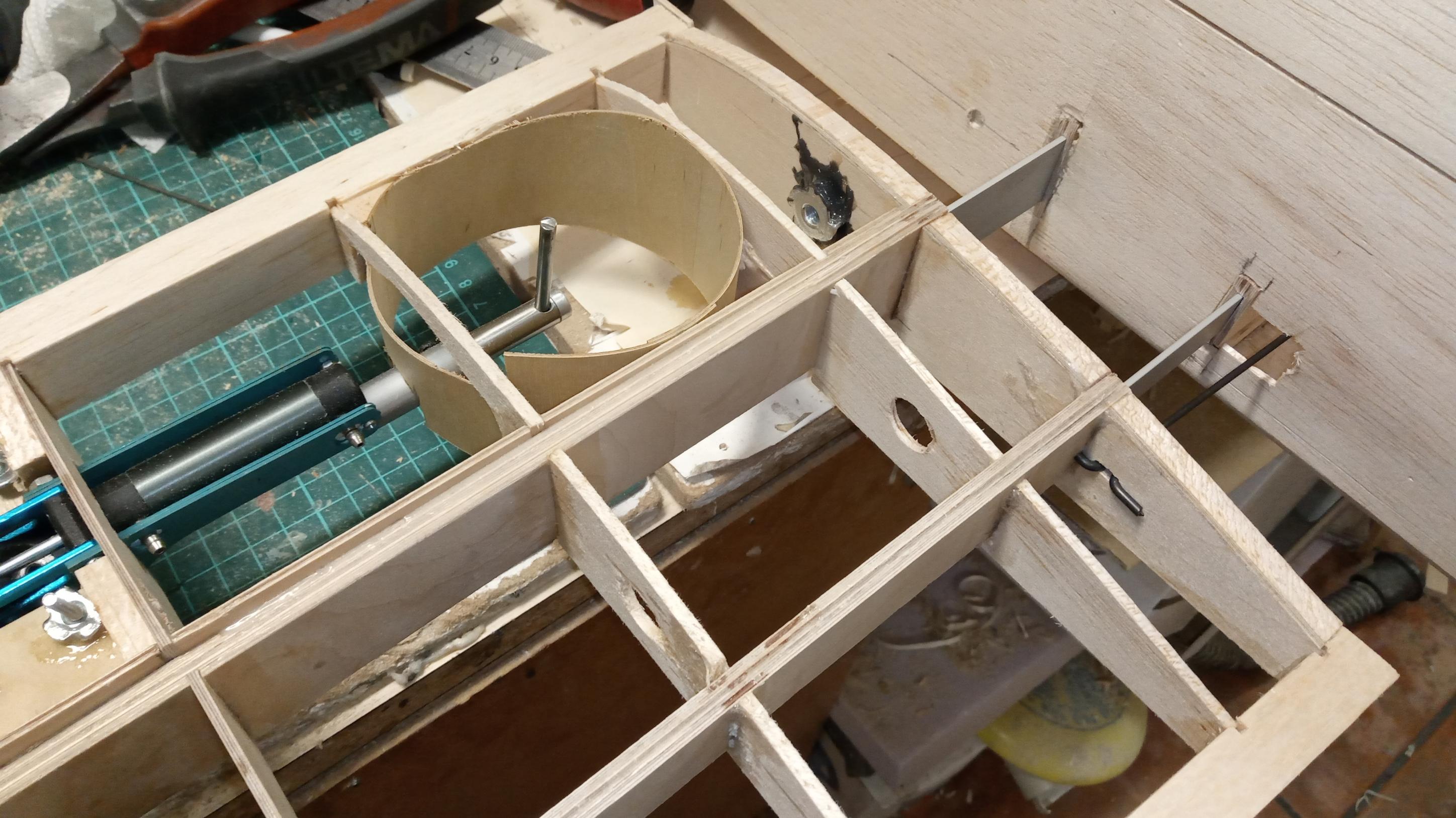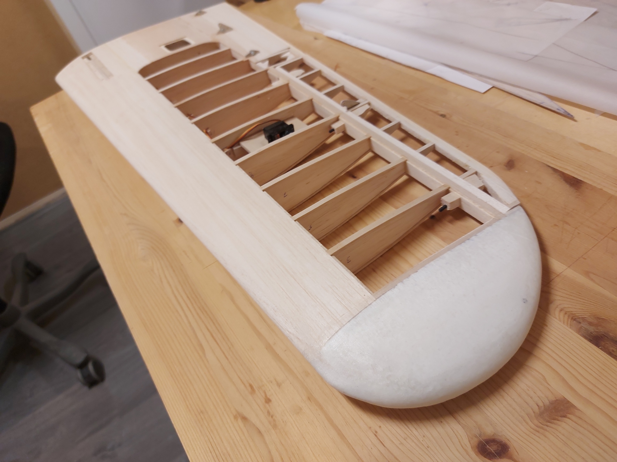 Sen låste jag vingen med en fjädrande pianotråd i bakkant, plus en skruv i framkant.