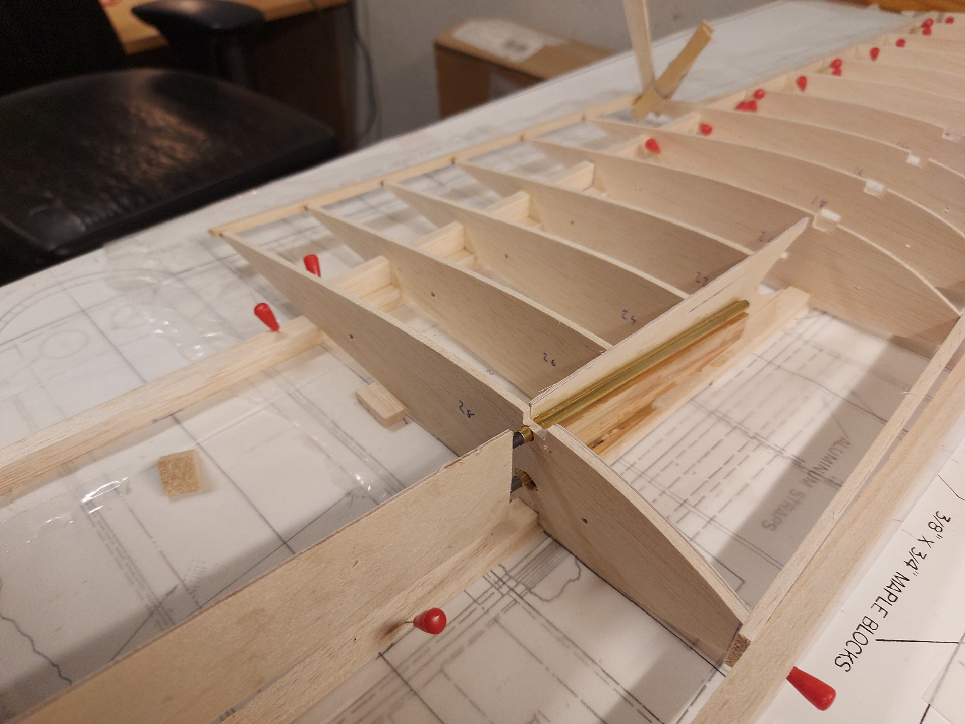 Nu har du ju redan kommit en bra bit på vingen, jag har byggt några delbara vingar genom att 'klä' en hylsa av 1,5-2mm ply runt en 2x25-30mm plattaluminium.