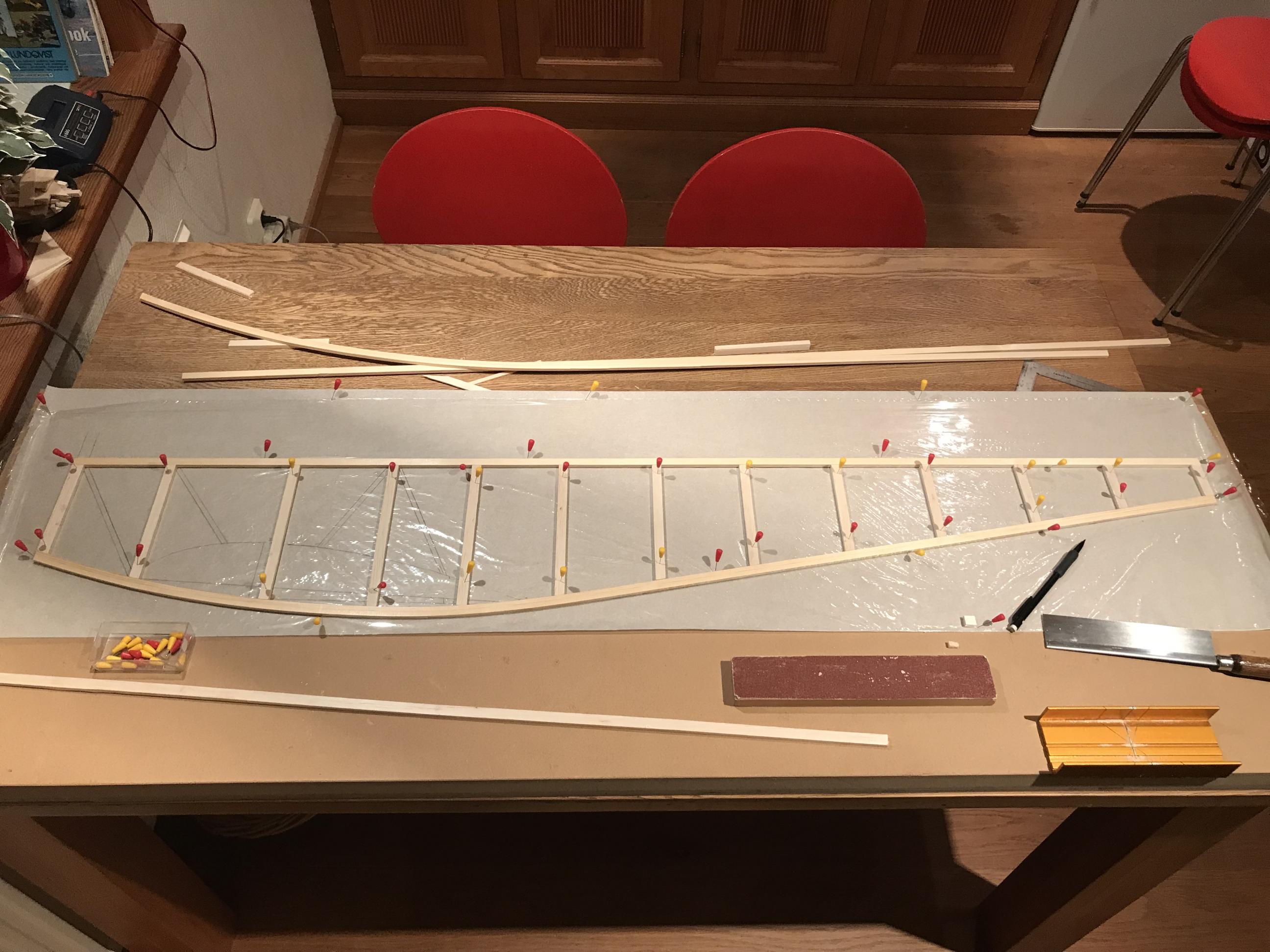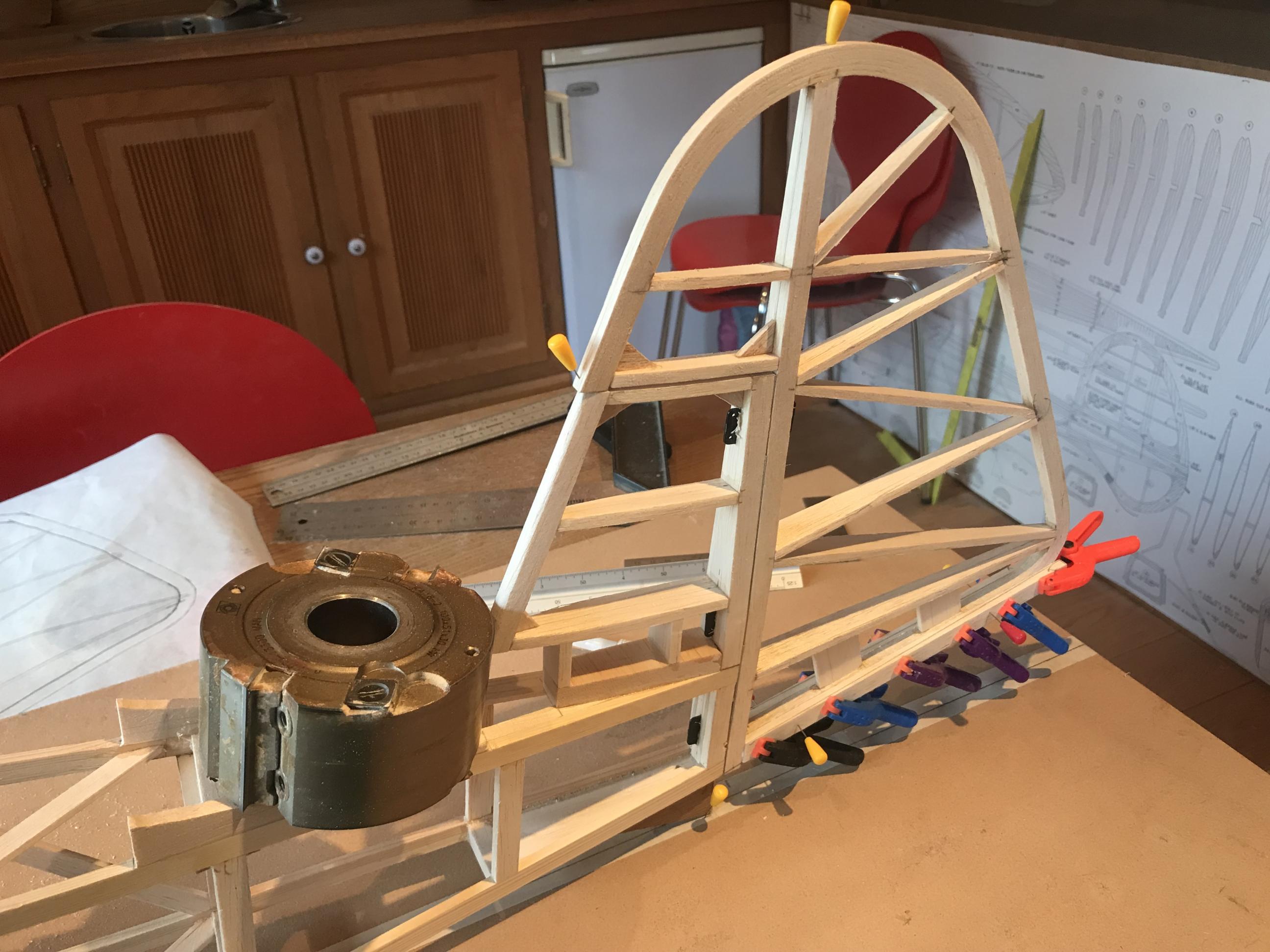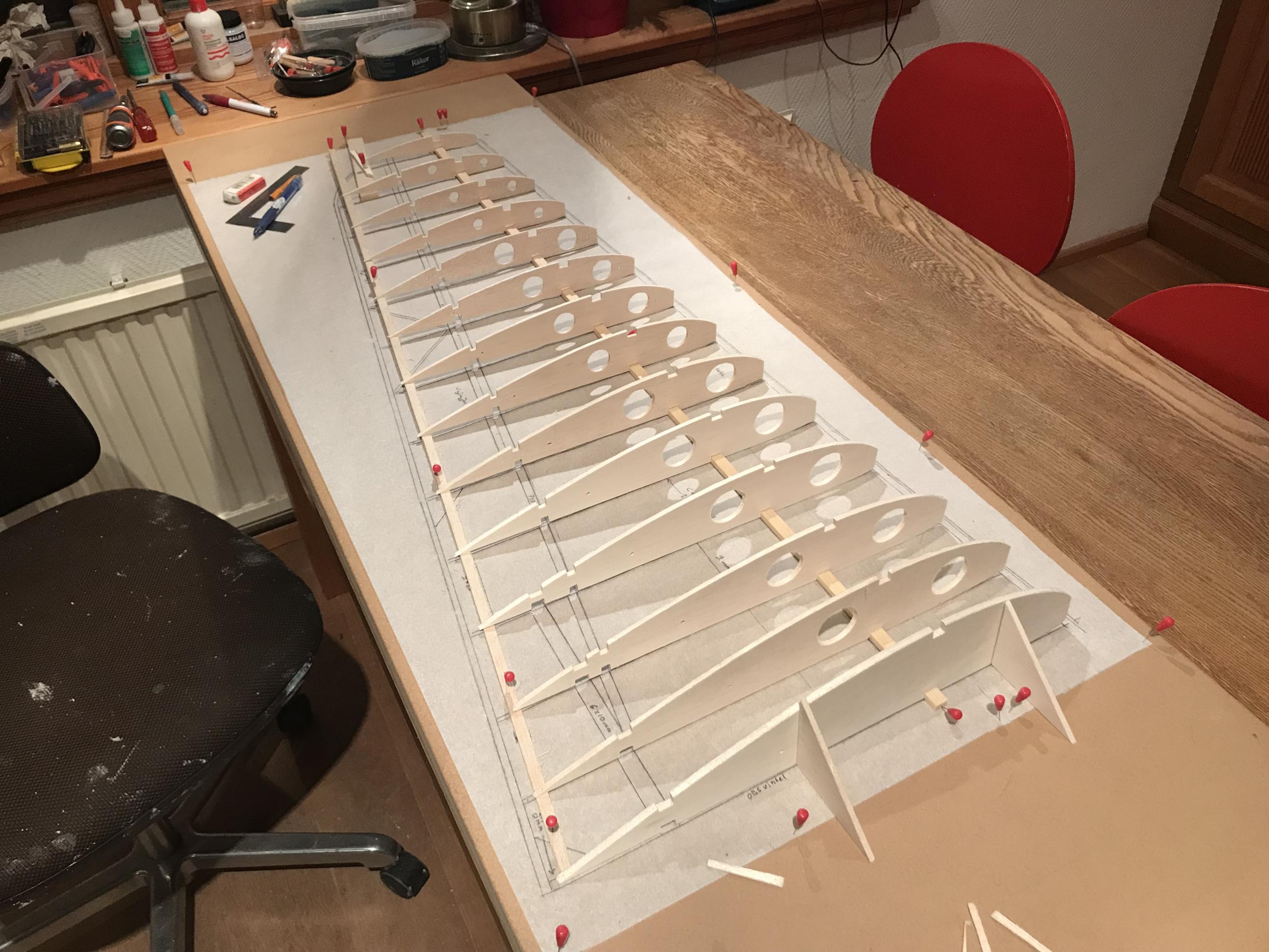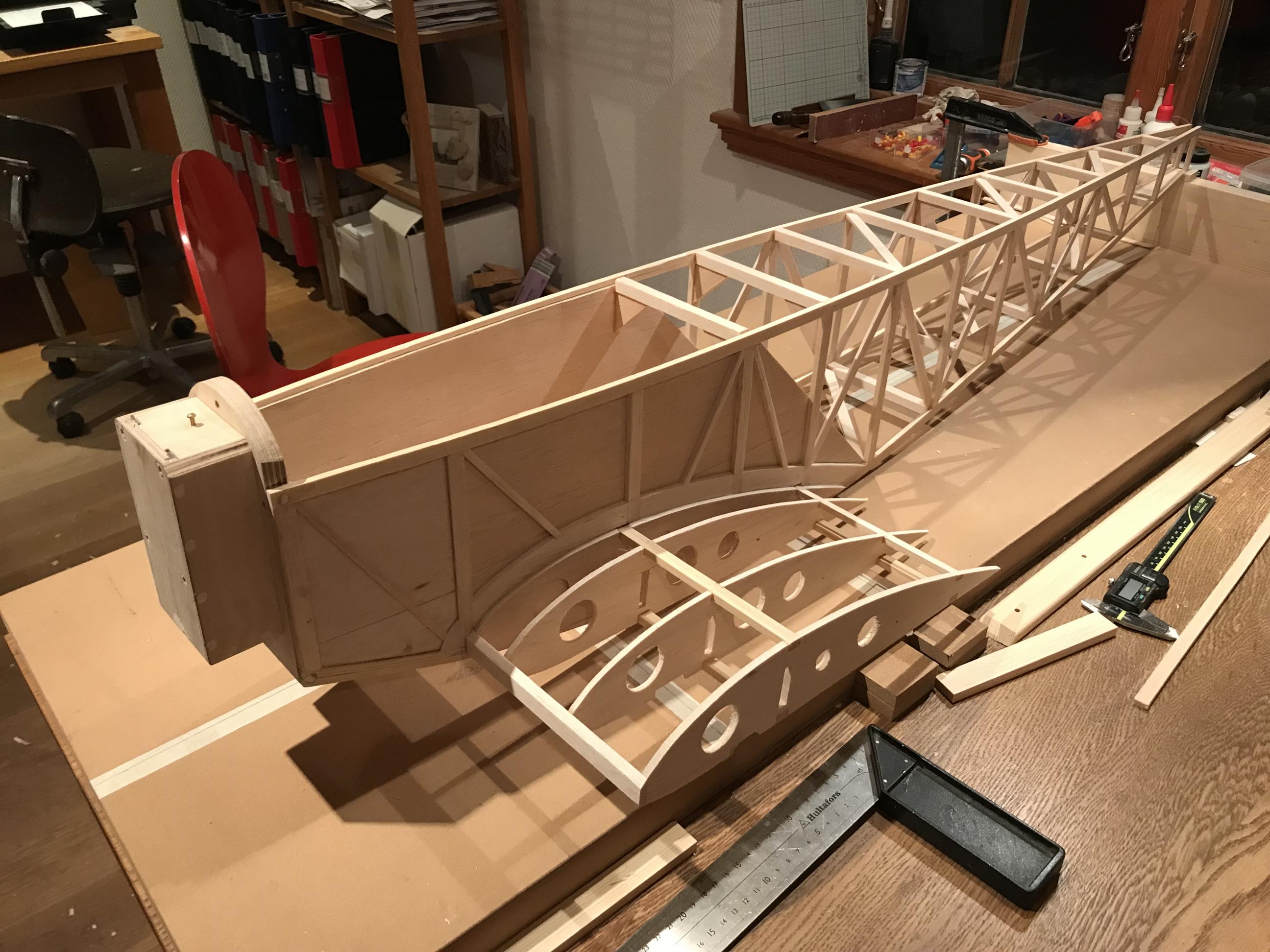 Jag har inte följt ritningen helt då Pär använt mycket 0.4 mm plywood och jag har byggt mer i balsa och mer öppen konstruktion.
