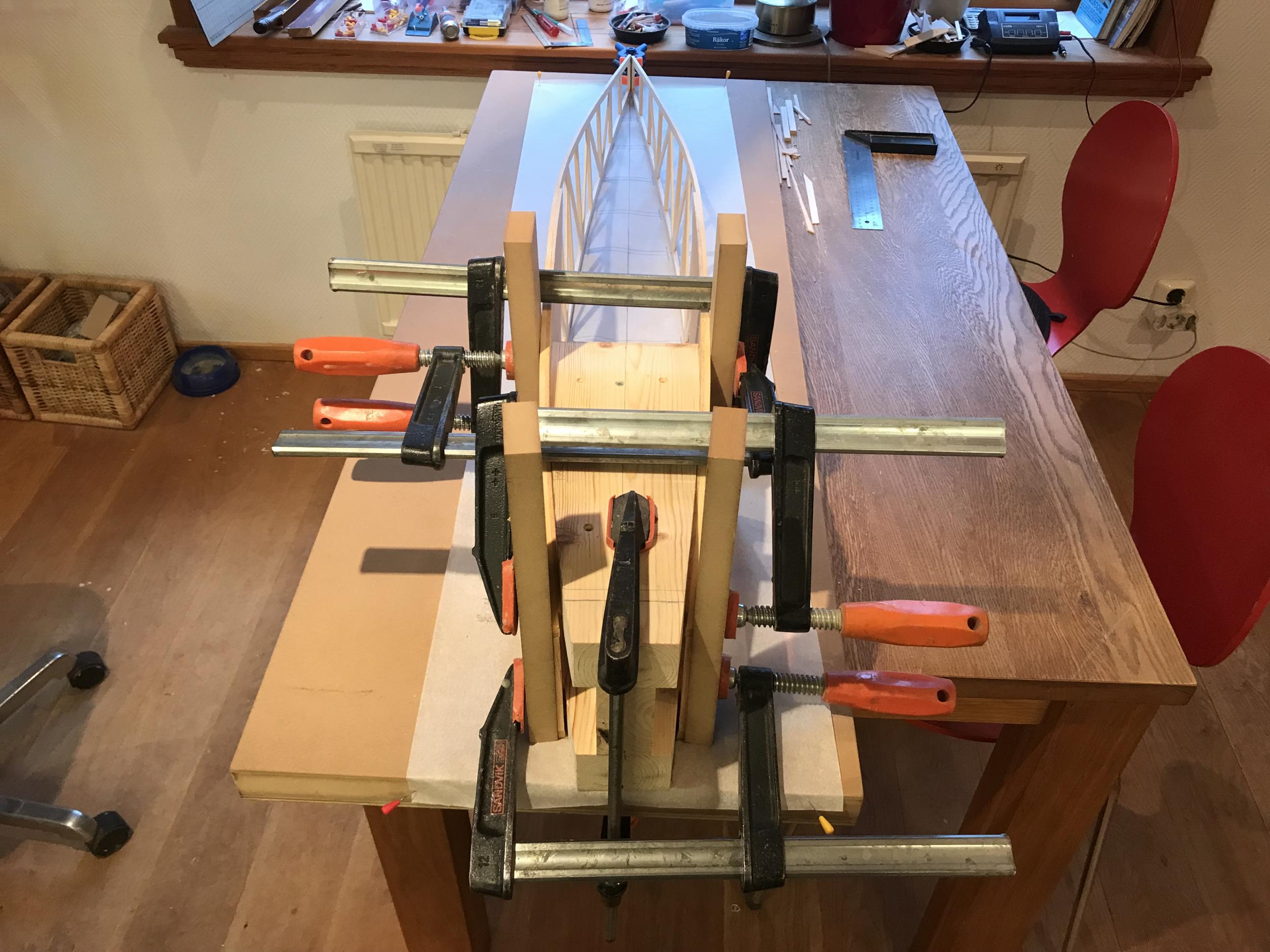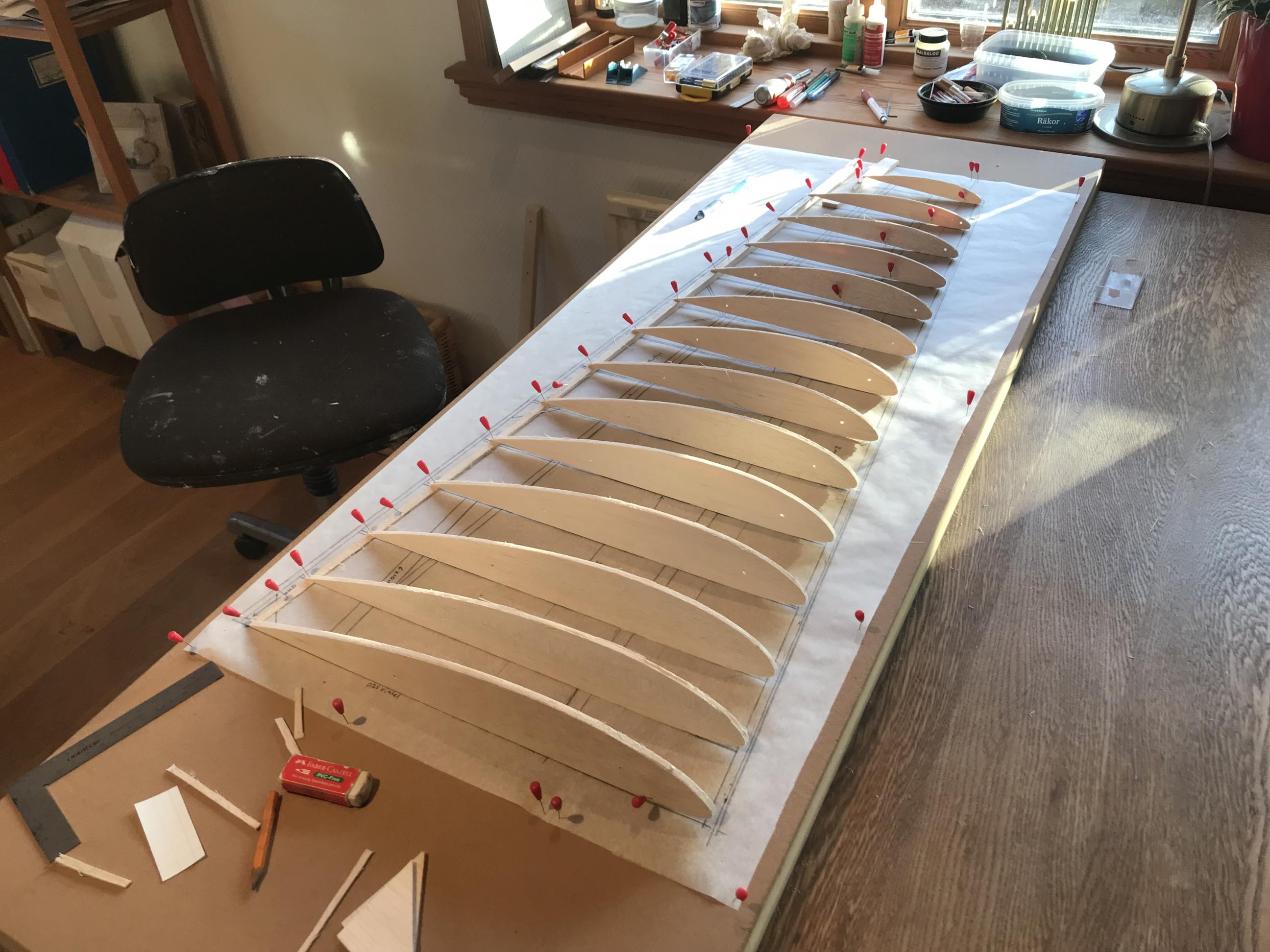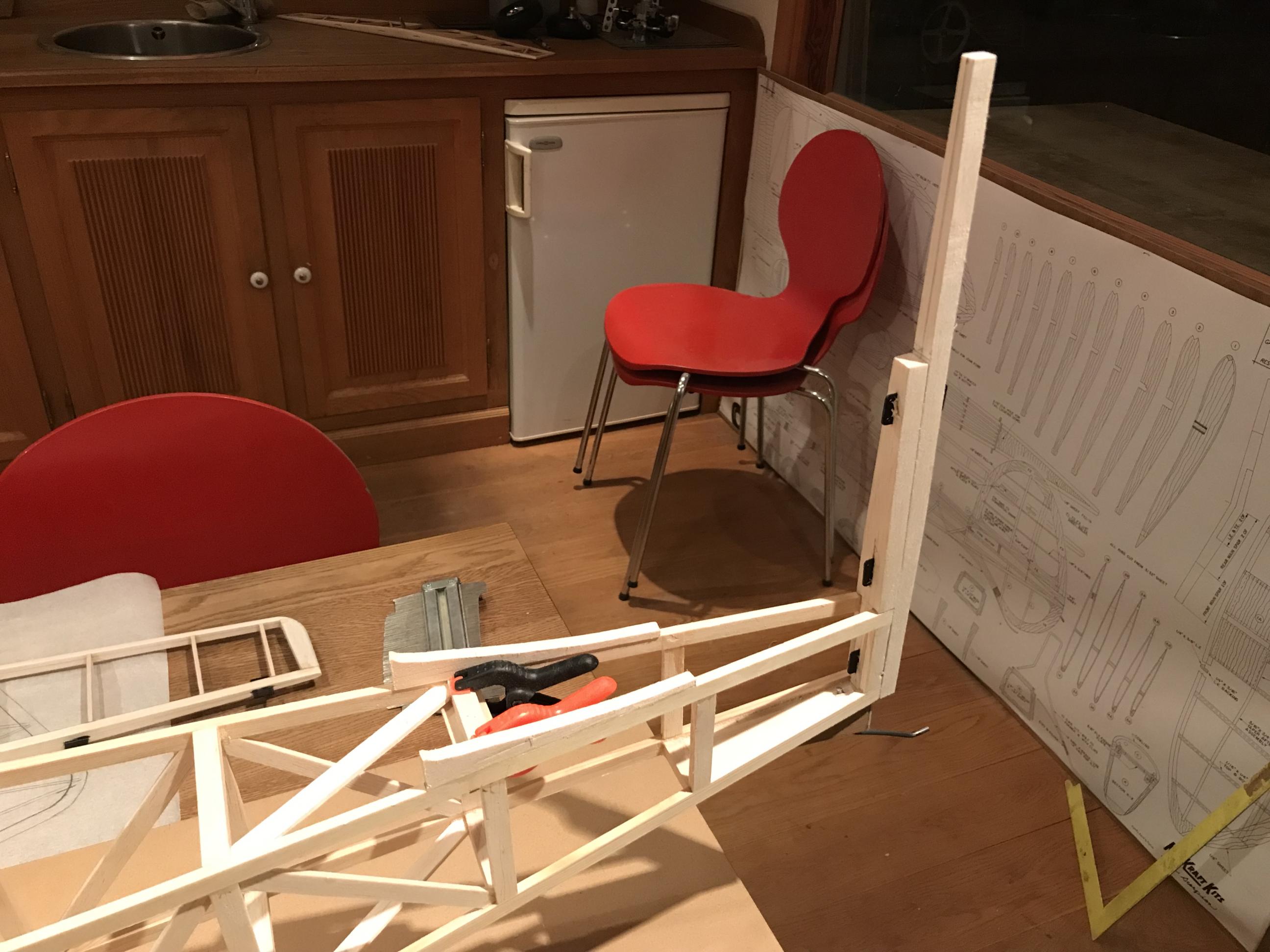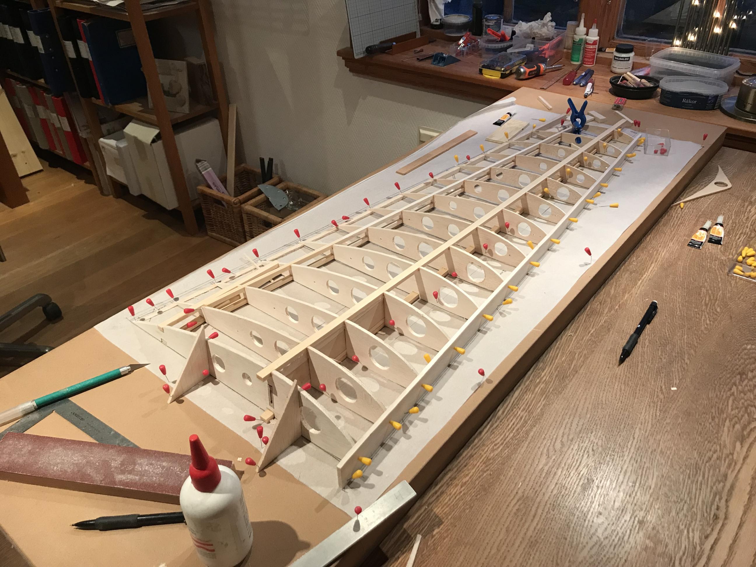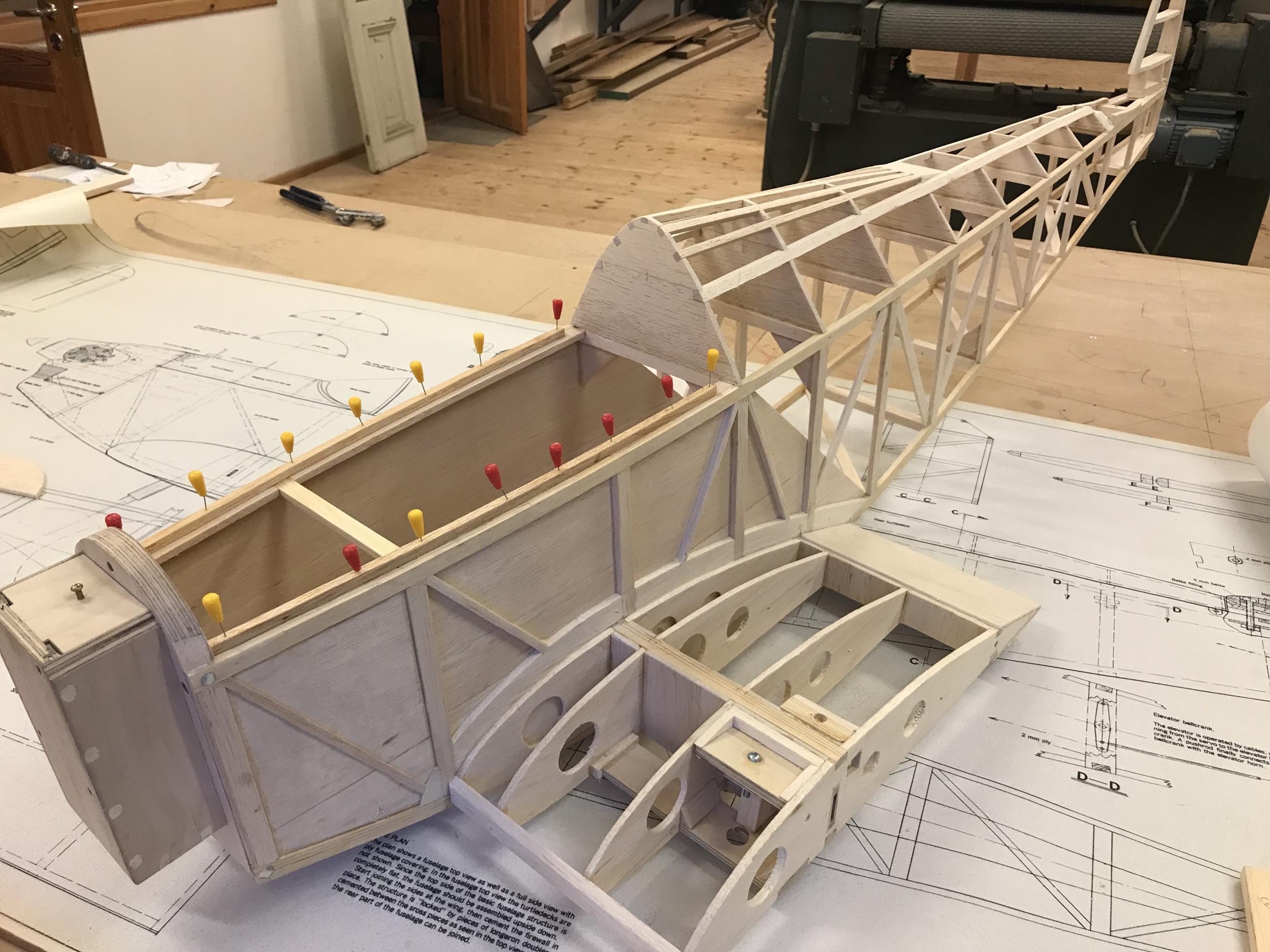 Jag har inte följt ritningen helt då Pär använt mycket 0.4 mm plywood och jag har byggt mer i balsa och mer öppen konstruktion.