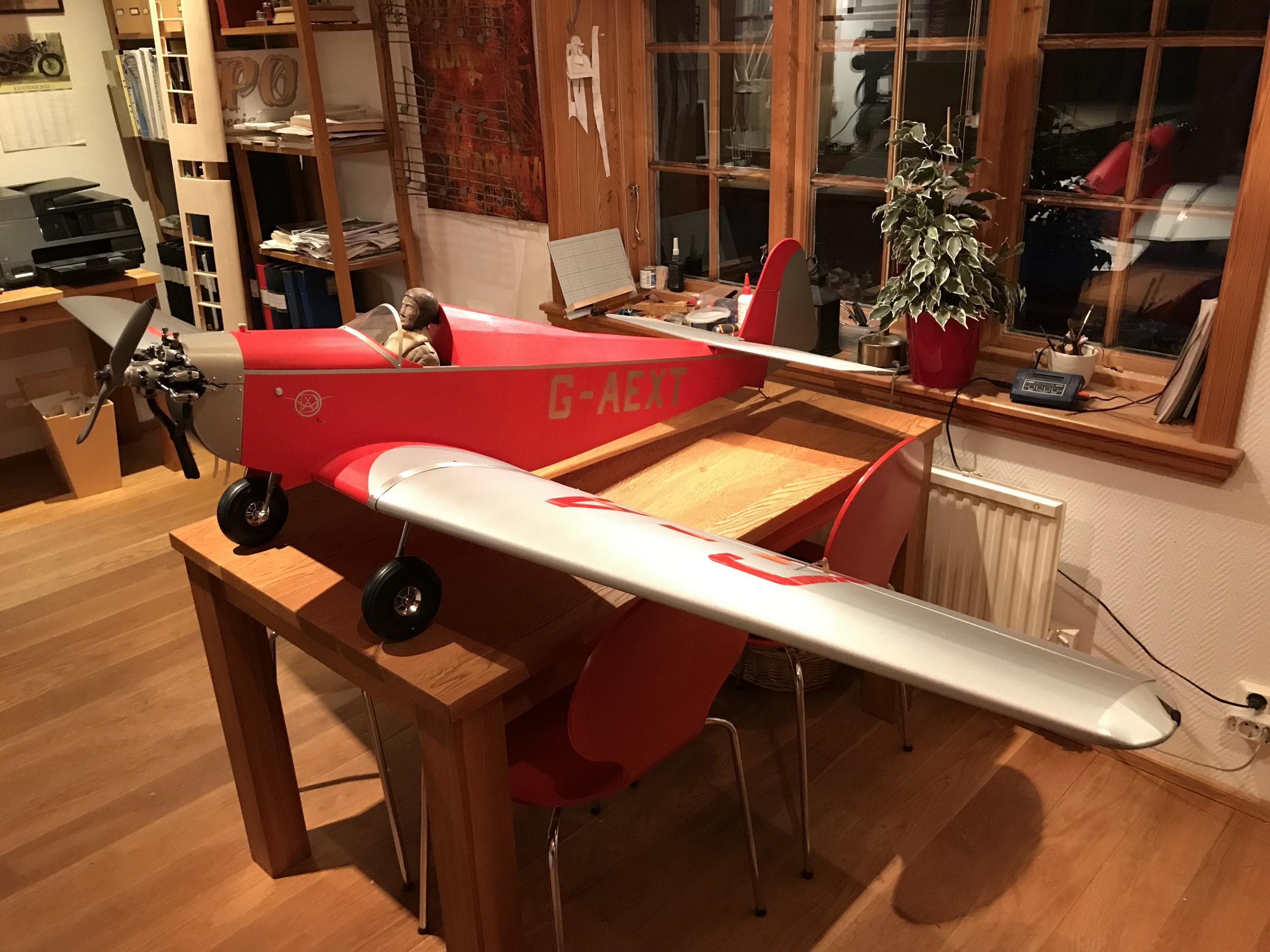 Modell klar. Vikten blev precis 4500 gram men har lagt i ytterligare 200 gram i nosen, för att ha den lätt framtung inför premiärflygningen som jag har tänkt att ha nu i vår. Tack för visat intresse.