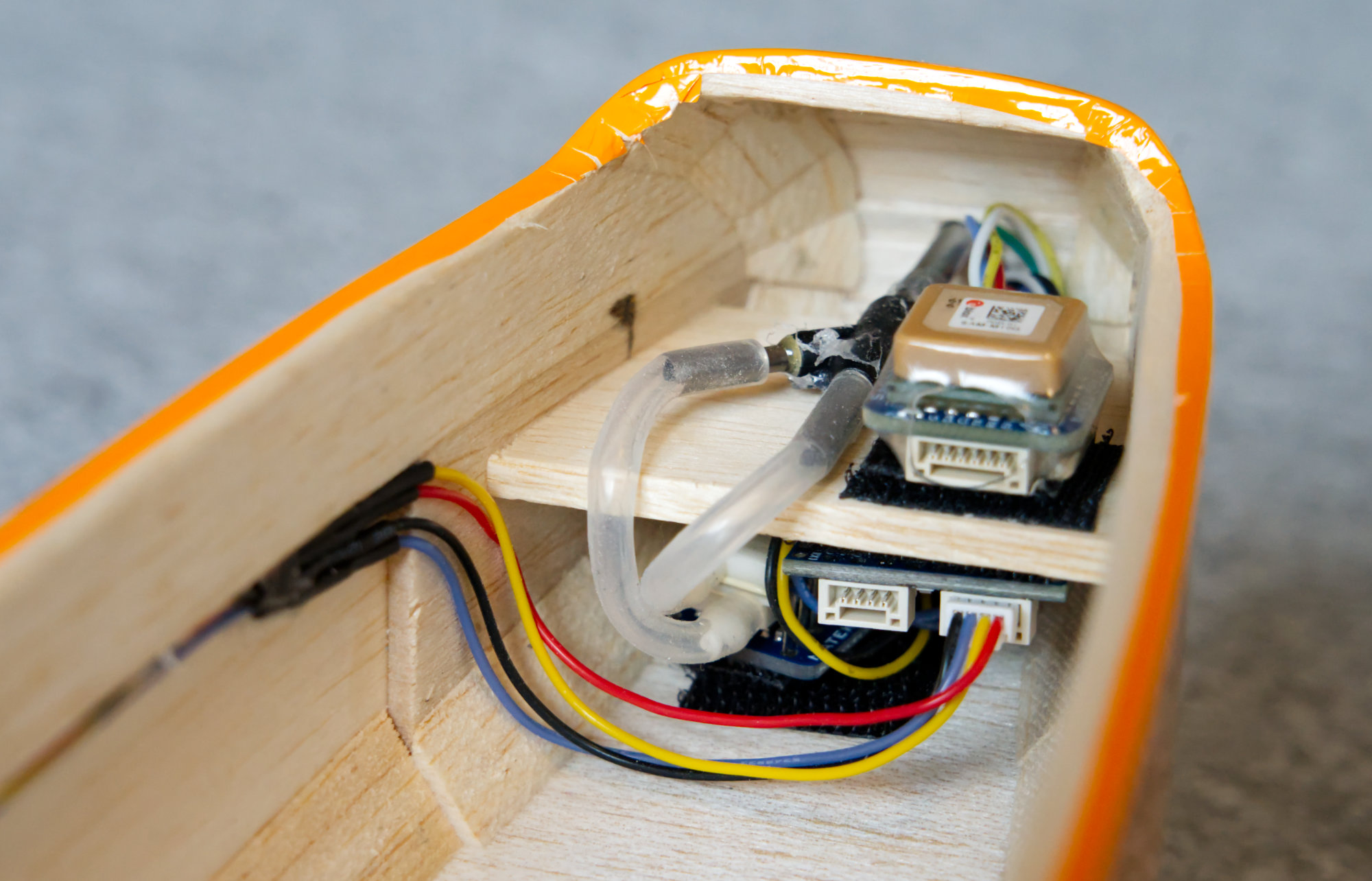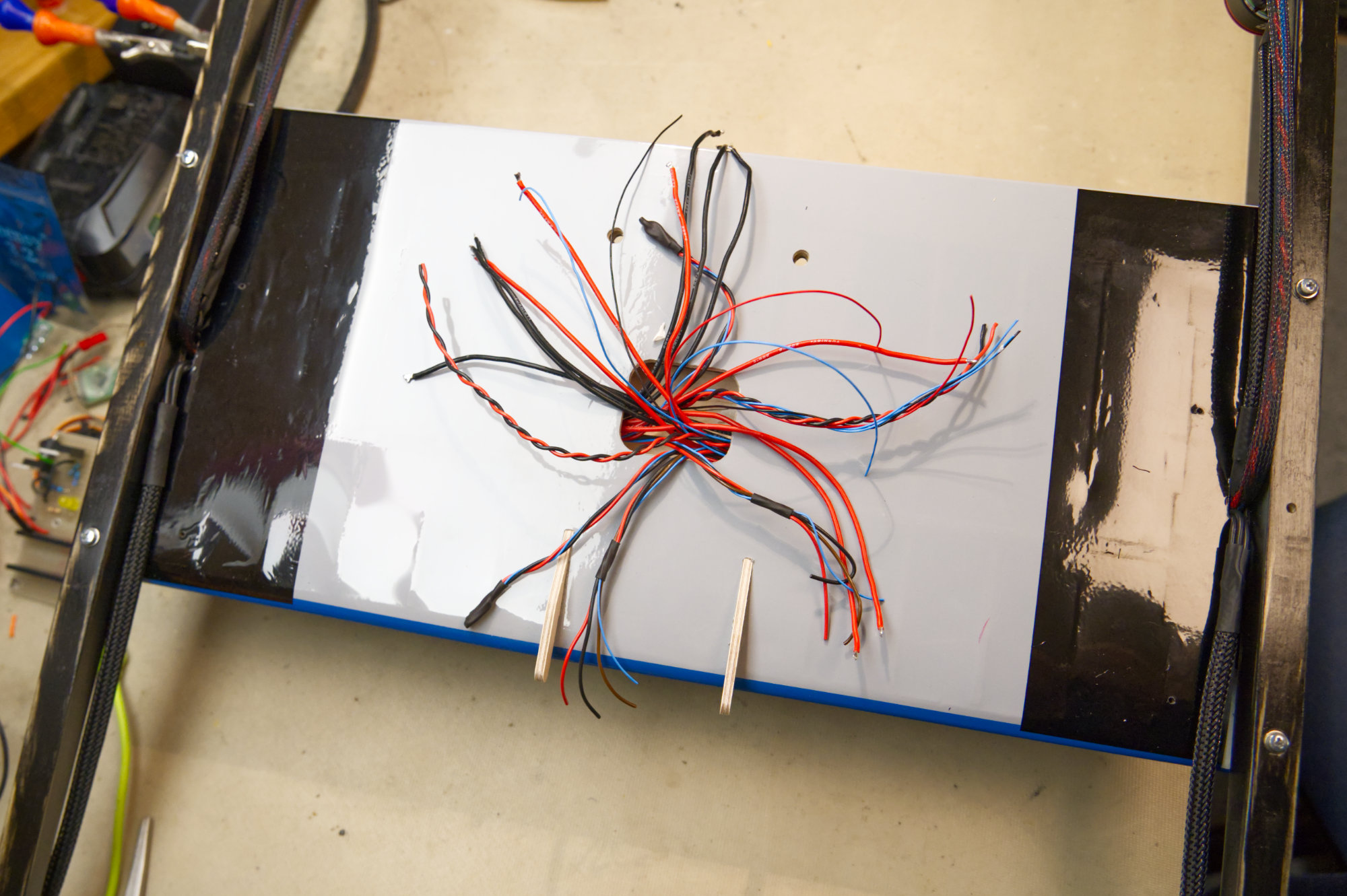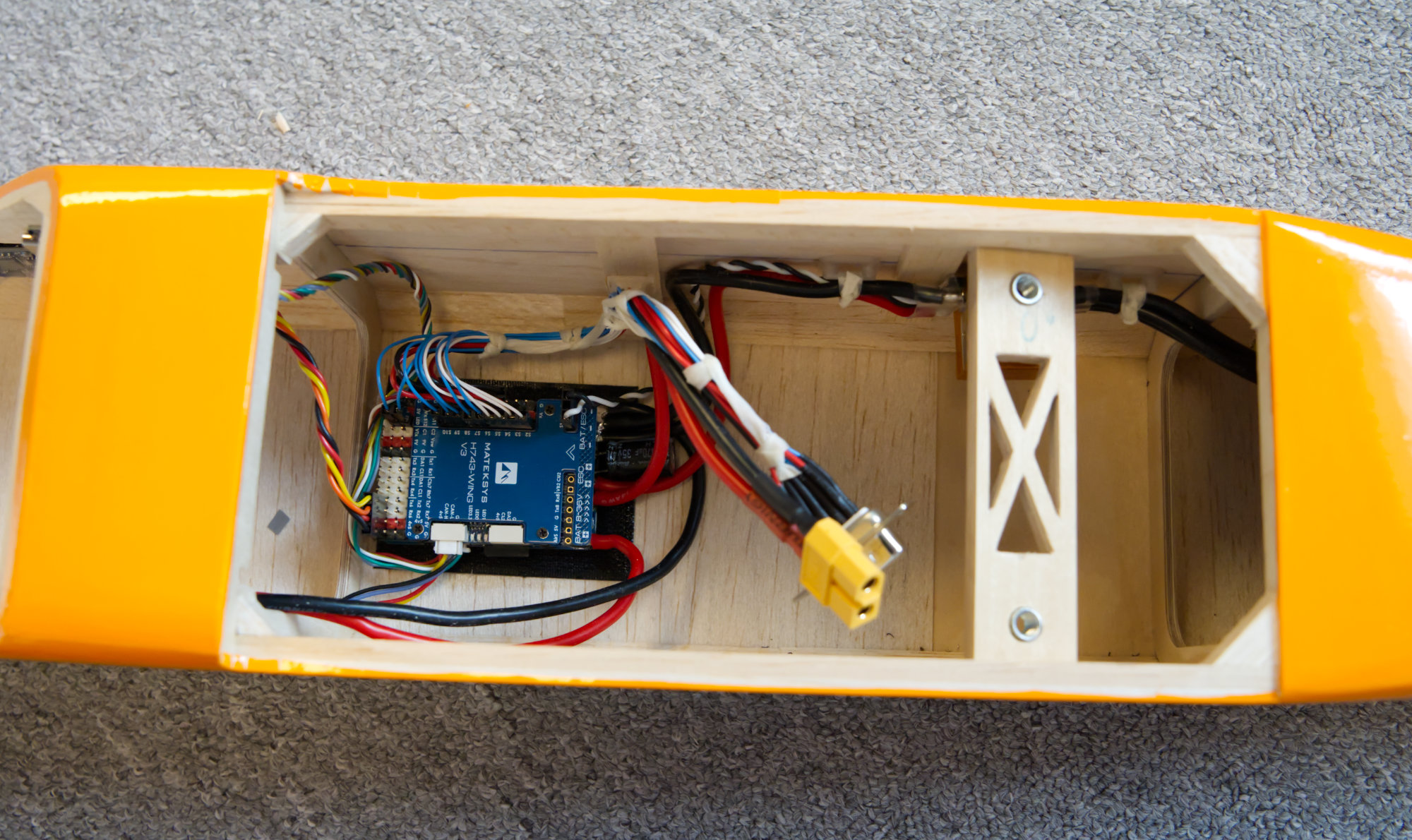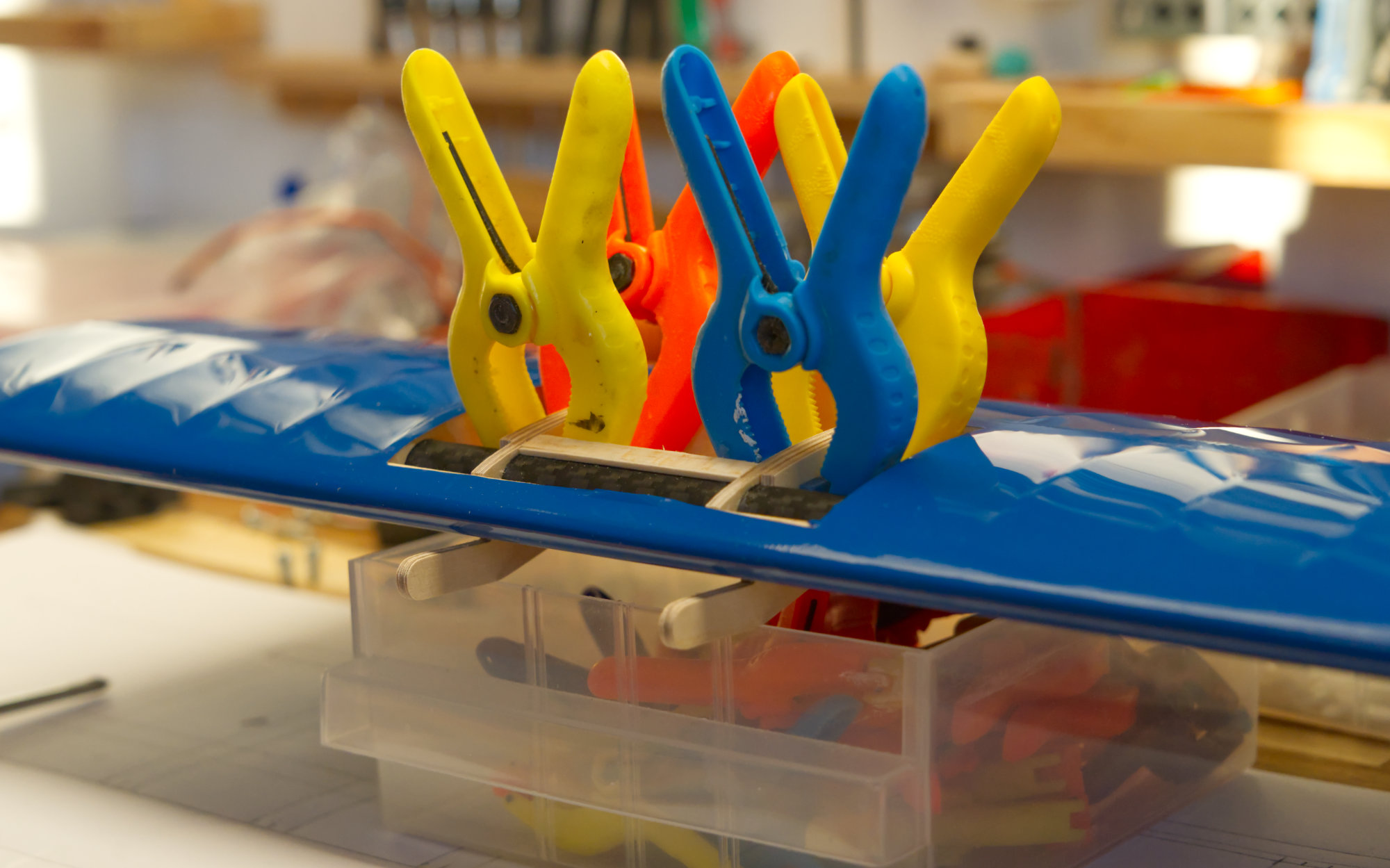 Motorspantet målade jag med svart hobbyfärg, lite för pilligt att komma åt att stryka på film där. Tyvärr gick det lite för fort, så jag glömde limma in krokarna som håller vingen på plats innan jag klädde ovansidan, så det var bara att skära upp igen och fixa. Blev ju bra ändå.