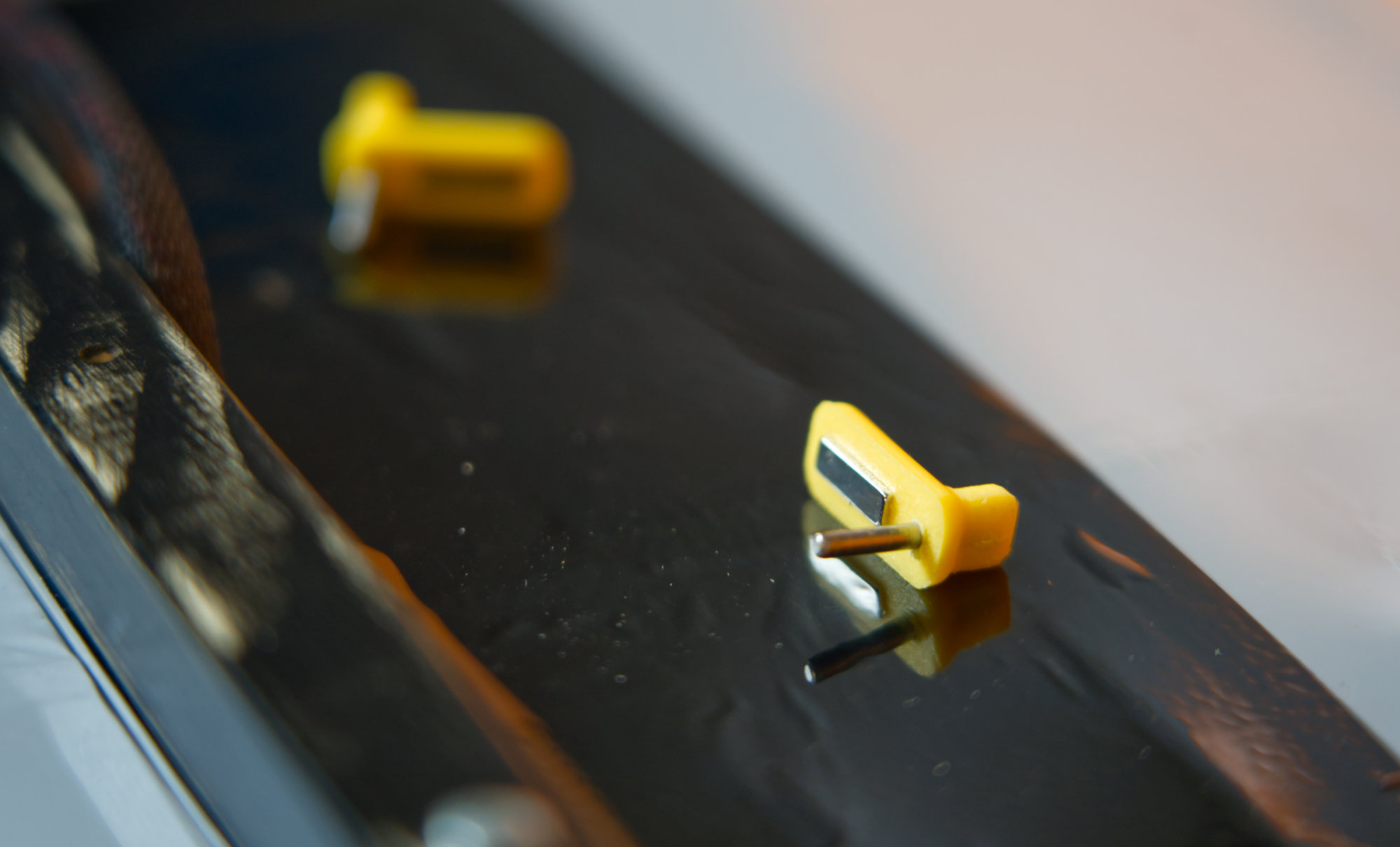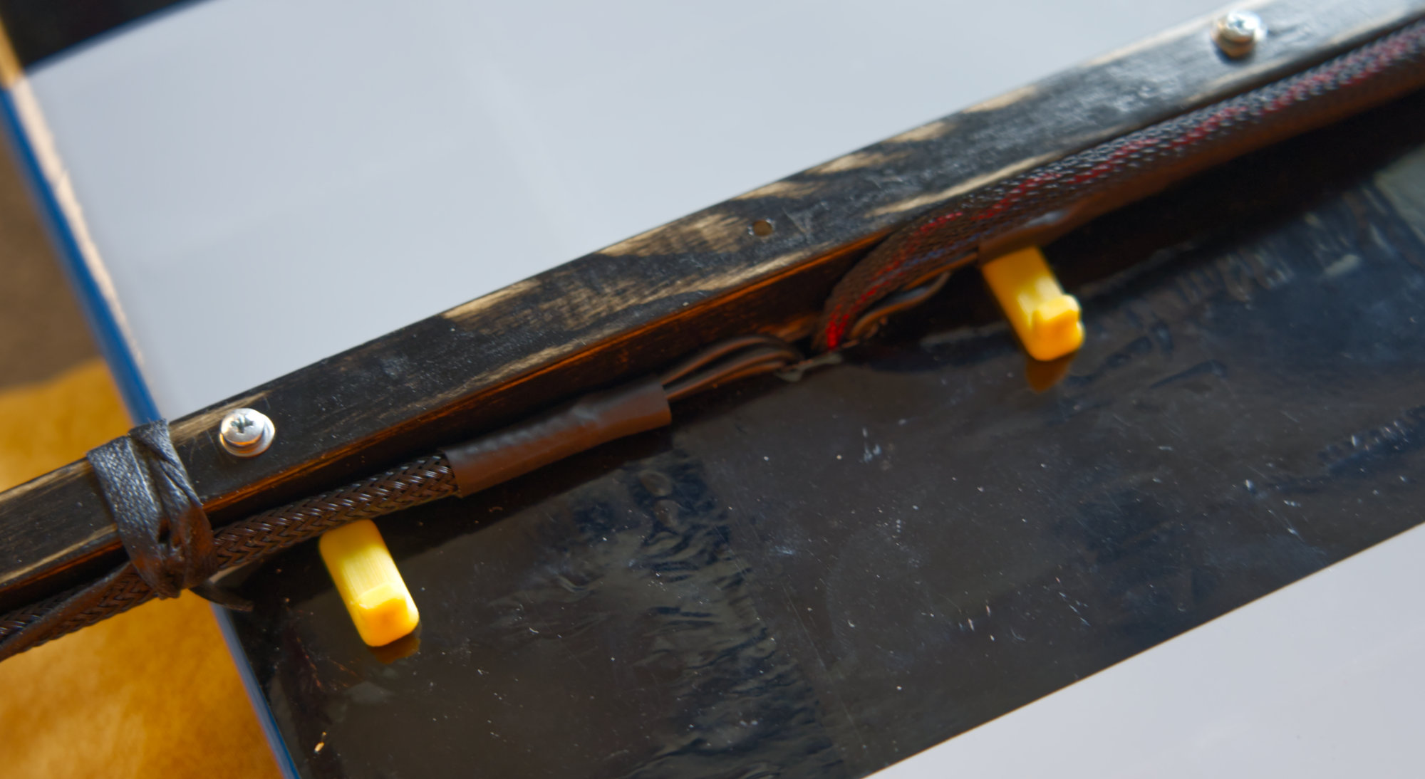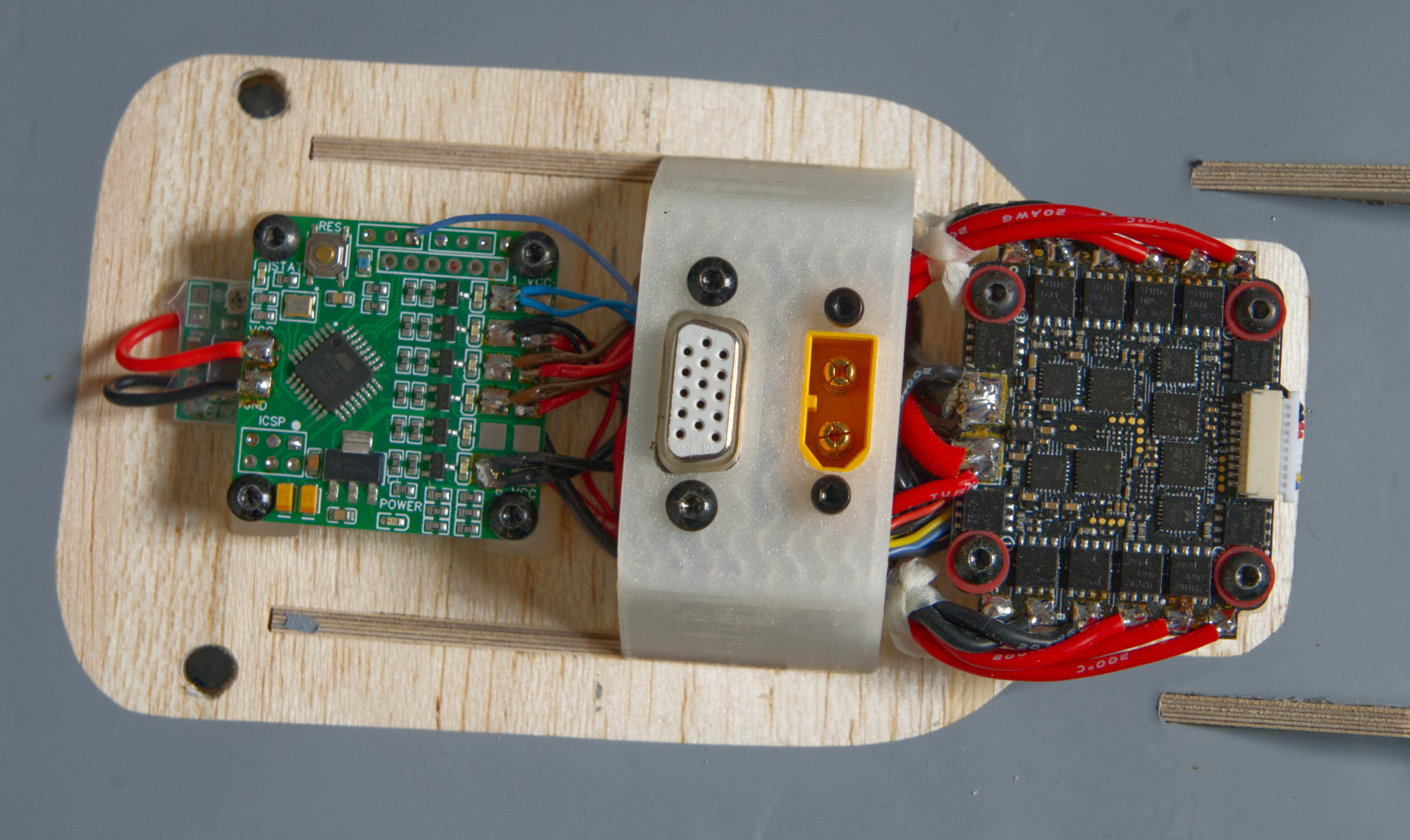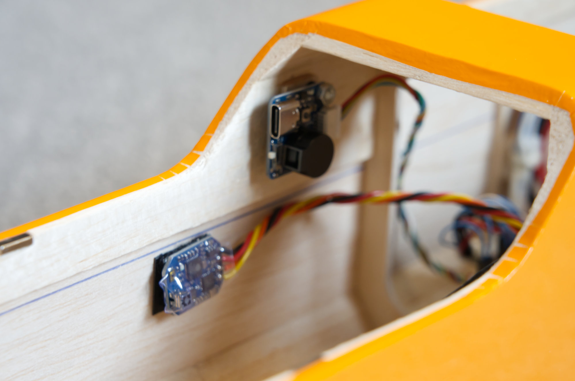 Roderhornen tillverkade jag av tun plywood. Skar ut dem med min CNC färs. En liten skåra gjordes med kniv i balsan, roderhornen slipades lite spetsiga i nedkant, sedan limmades de fast med 30 min epoxy. Min tanke är att använda små kullänkar både vid servona och roderhornen för att få till ett nästan helt glappfritt linkage.