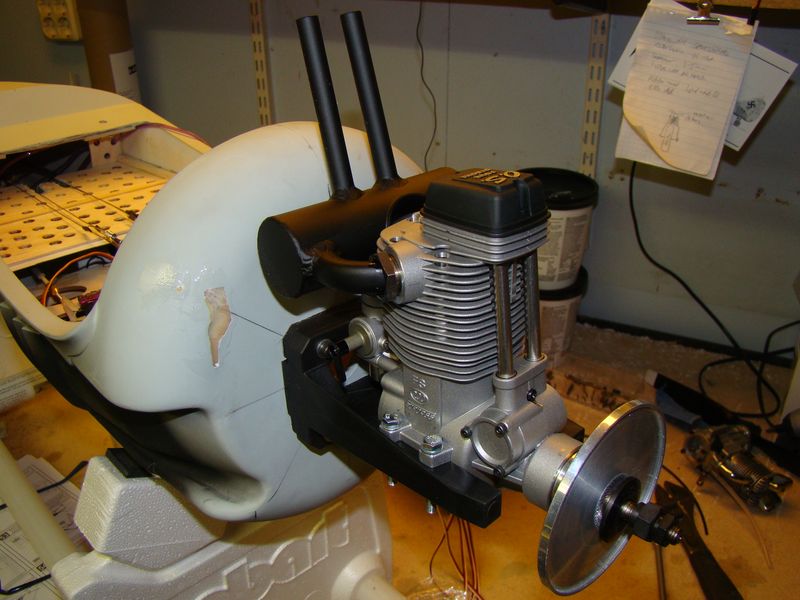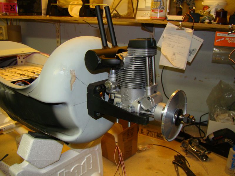 Som ni även ser på bilderna av motorinstallationen har jag även fått laga lite vid brandväggen. Det var några kraftiga sprickor där när jag fick hem modellen. Har slipat ur sprickorna med min underbara Dremel och lagt i Epoxy. Kommer även förstärka på insidan innan första flygning, med glasfiber och Epoxy alternativt plast. Kommer då förstärka upp hela träplattan bakom brandväggen för säkerhetsskull. Men mer om det senare.