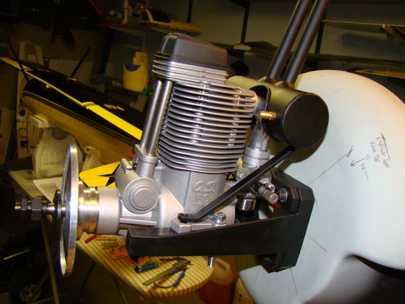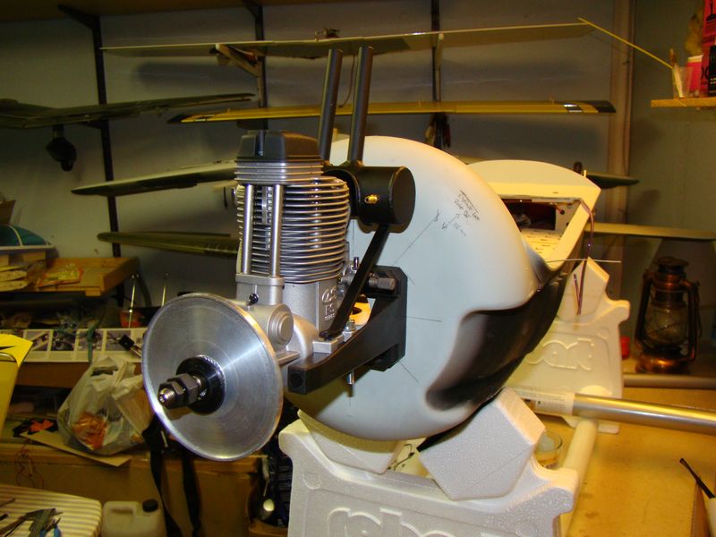 Ett gott råd och förslag, glöm det där med gummiupphängning det kommer bara göra att motorn skakar ännu mer. Har testat på en P-38 en gång i tiden och sämre skit får man leta efter. Efter en fem sex flygningar så är gummina helt slut ! Byt ut gummibussningarna mot motsvarande i teflon eller aluminium .Då kan du göra dom kortare samtidigt eftersom flänsen som är på gummina inte behövs. Du kan dra brickorna stumt mot fästena, sen bör förgasaren gå fri !