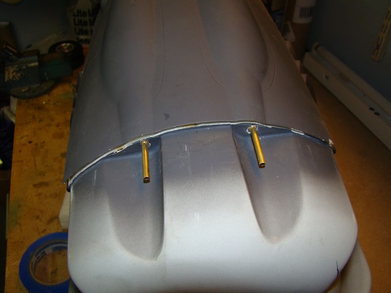 Har i dag borrat hål och trätt i mässingsrör. Nu ska härnäst dessa limmas fast efter att de kapats till rätt längd. I dessa rör kommer ett tunnare rör (ett rör av mindre diam) träs igenom. Dessa blir själva kanonerna. Kruxet som jag ser det är inte att få dessa fungera som låsning utan tillverka dom tratt liknande flamdämparna. Fick ett tips av en kille i Sweich (eller hur det nu stavas) att limma fast en stump aluminiumstång på eldrören som skulle vara nästan dubbla diam. Sätta eldröret i en borrmaskin och sedan ta en fil och "svarva" konan på flamdämparen. Är ju ett alternativ iofs :stupido2: