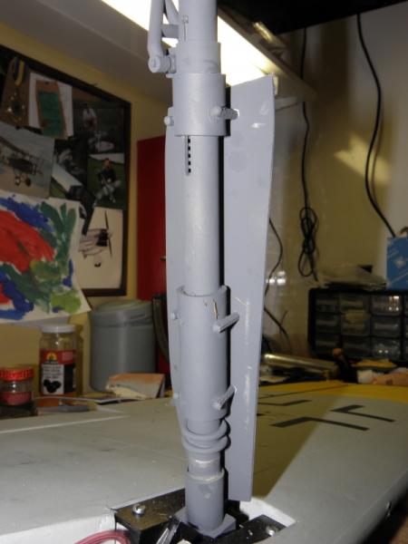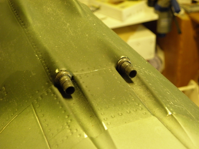 Jag gjorde en liknande lösning på min Bf 109E. Satte en blompinne i träsvarven och svarvade till kona och div avsatser som skulle vara på röret. Lättast var att få det snyggt var det med hjälp av nålfilar. Jag tar med den på warbirdträffen så får du se hur jag gjorde.