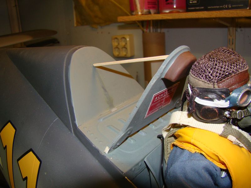 Det servo som jag håller mellan mina fingrar ska vara till själva fällmekanismen av bomben. Det kommer monteras i något av hjulhusen med helt dolt linkage. Därför kommer jag holka ur själva gondolen, och för att den ska hålla kommer den, när den är helt färdig bearbetad, att plastas med epoxy och glasfiberväv. Sen är vi ju där igen med att hitta en färblandning som matchar vingens undersida.... :huh: