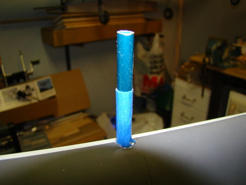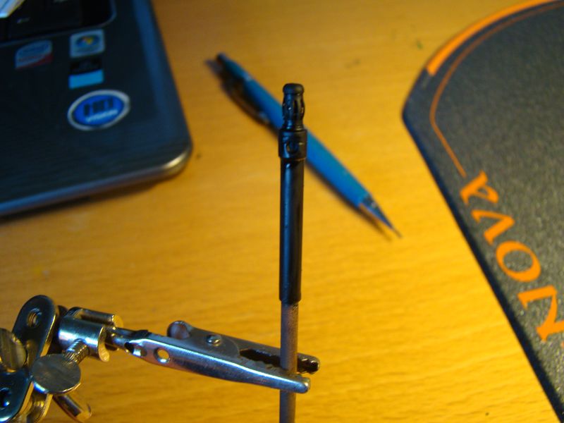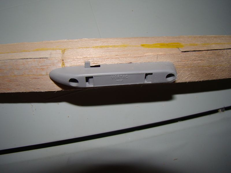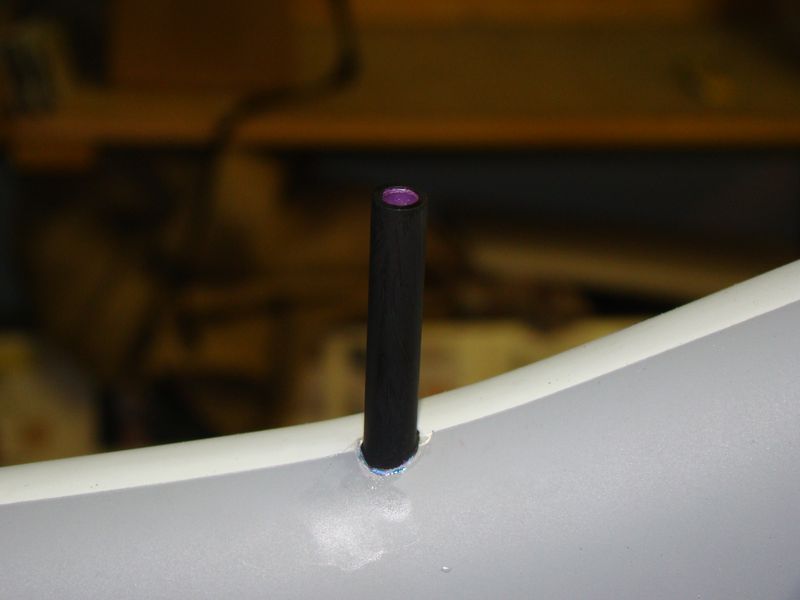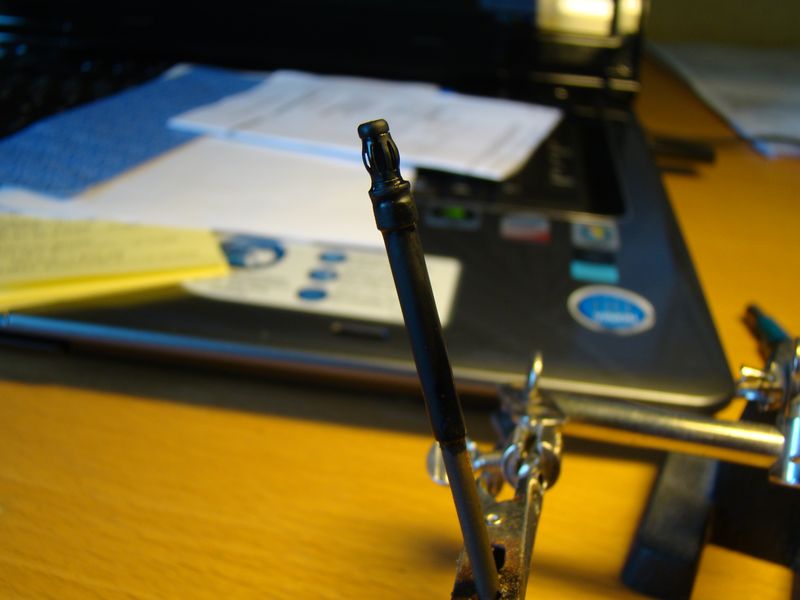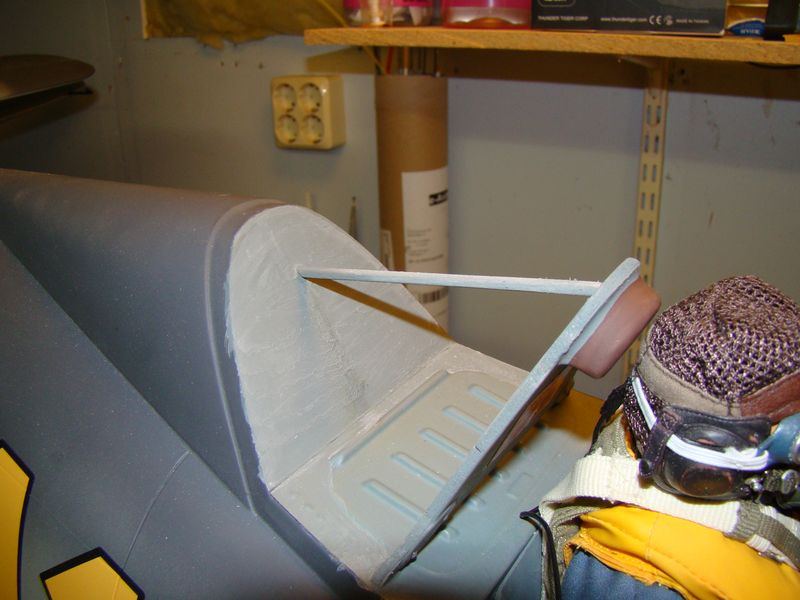 Även den "mojäng" som yttre antenwiren går igenom canopyn till fentoppen har jag också slipat till. Det som ska göras ytterligare på den innan målning är själva spåret för antenwiren.