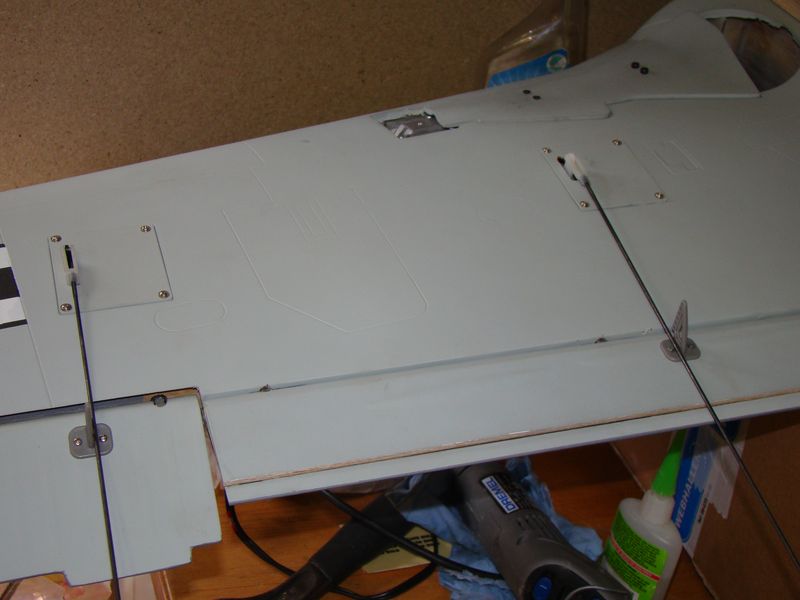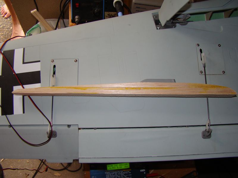 Även så monterade jag roderhornen på skevrodren och klaffarna. Fick göra lite tillpassning på bakplattan för att få den att passa i lätthålen i klaffens baksida.