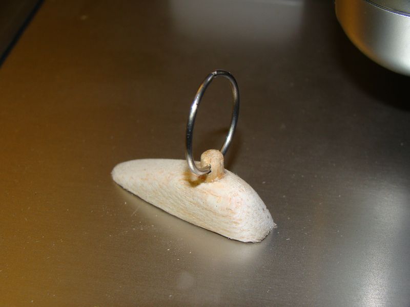 En pejl? antenn som sitter på undersidan av bakkroppen har jag också tillverkat. Den andra bilden av denna antenn visar när jag har silverlött ihop ringen av 1mm pianotråd.