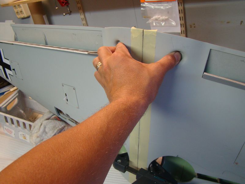 Där fingrarna så käckt försvinner in i vingen ska så småningom vingbultarna hamna.