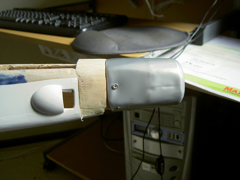 Medans jag monterade servona så fick jag en som jag tyckte LYSANDE idé. jag skulle ju självklart kunna använda den befintliga nosen som plugg och göra en ny i plast som sedan skulle kunna målas lite fint i matchande färg med planet. gjorde ett försök och blev förskräkt över hur jävla illa det såg ut "!" Den idén skrotades i samma ögonblick som det monterades på planet.