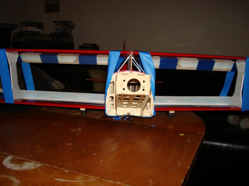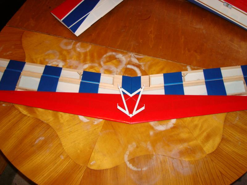 Förstärkningarna för ving halvorna limmade och på plats. Servo hålen något upp förstorade, Större servon än manualen aj :banghead:. Full fart mot helgen:icon_pidu: då kan den nog bli färdig:thumbup: