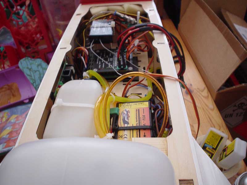 Men det blir inte trångt i en Sprint!!! :yu: Du har väldig mycket utrymme i flera skickt.....:sarcastic: Luftflaskor och batteri till turbin i bottenvåningen. Accar till mottagere och servon i utrymmet över noshjulet. Och då har du plats till pump, ventiler, evt. powerbox på "andre våningen"......inga konstigheter med det :stupido2:Och ECU´en får plats bakom tanken.