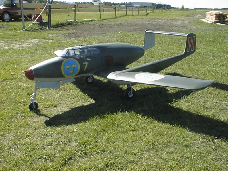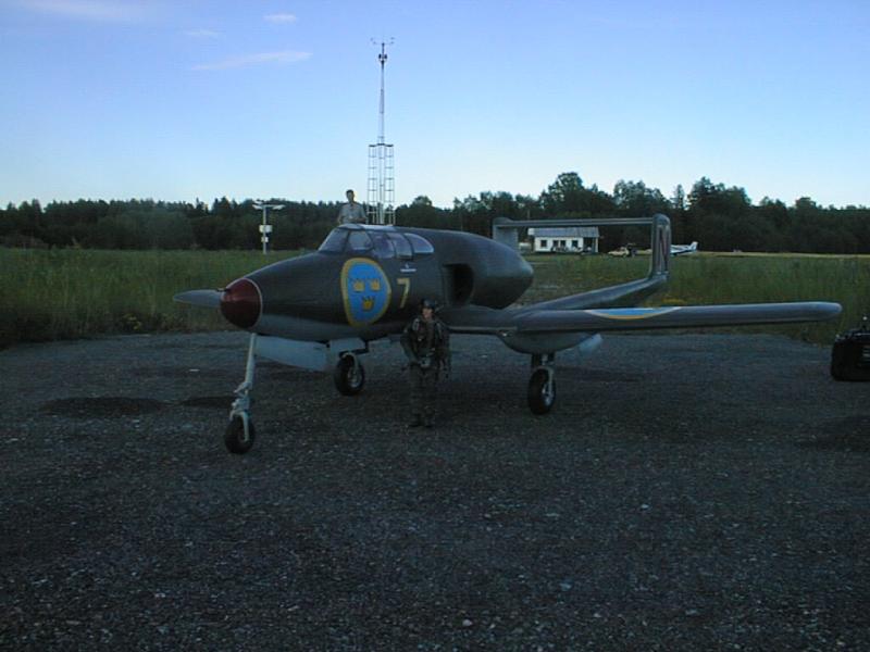 Att det skulle vara en jet visste jag, kollade några flygplanstyper och kom att tänka på Johan Nauwelaertz de age`s J21R som han visade halvfärdig på ett meeting i Söderhamn ett år.