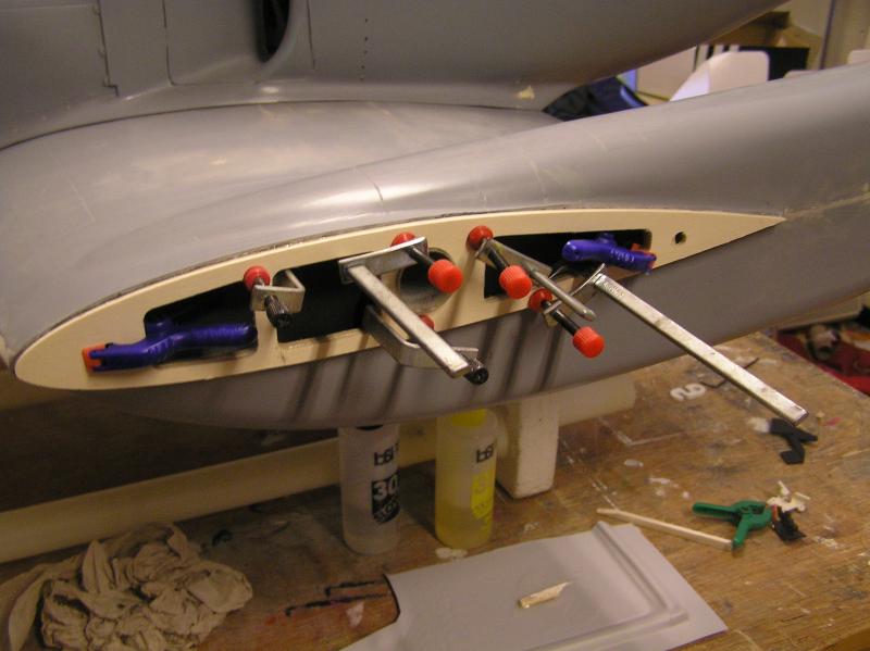 Har även limmat in stödlister bredvid där noshjulsluckorna ska kapas ut, för att kanterna inte ska flexa