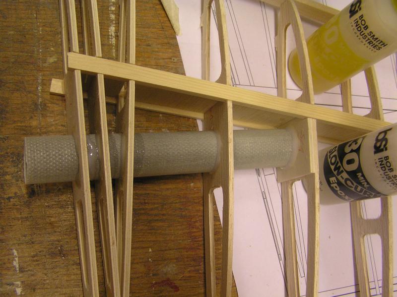 Glasfiberröret är limmat med epoxy blandat med lite bomullsflock,