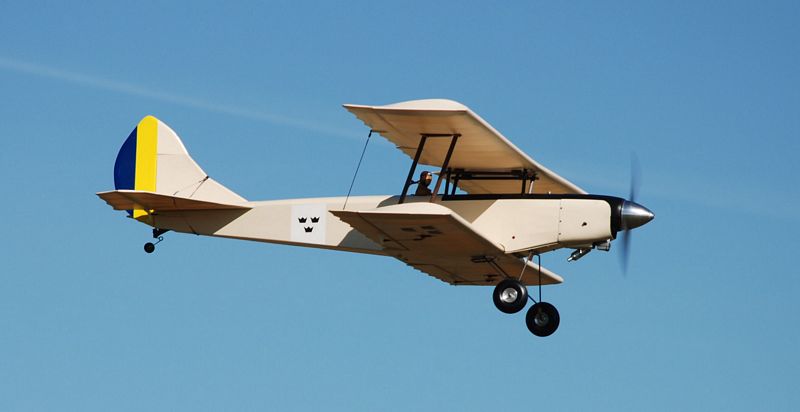 Har nu färdigställt mitt senaste projekt, en uppförstorad Josefin, av Bosse Gårdstad. Har haft mycket skoj med min "gamla" Josefin som nu p.g.a. ålder och slitage (div. krascher) dessvärre börjar lösa upp sig i sina beståndsdelar. Byggde därför ett nytt exemplar med en spännvidd på 2 meter. Motorn är en ASP fyrtakt 91:a. En del egna förändringar har jag gjort som t.ex skevroder även på övervingen. Betydligt mindre V-form, samt uttunnad profil, som dessutom är av semisymetrisk typ. Kortat kroppen 100 mm, delat höjdrodret och låtit sidorodret gå ner till kroppens undre linje. Klädd med Oratex Antik, och målad med vattenbaserad färg, plus ett lager Lustrekote matt klarlack.Vikten hamnade på cirka 5 kilo.