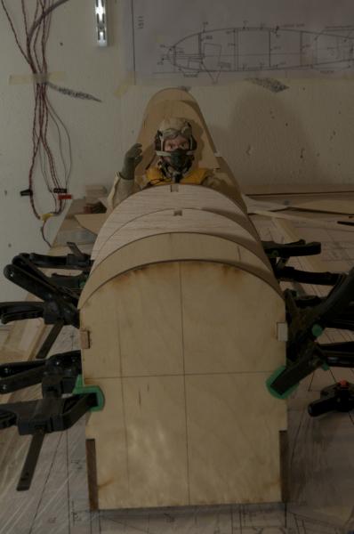 Det blev lite fredagsmys efter jobbet, provmonterade kroppen. Fick besök av en Amerikansk pilot som ville testa hur man bygger en Hurricane..i Sköndal....:dance3: