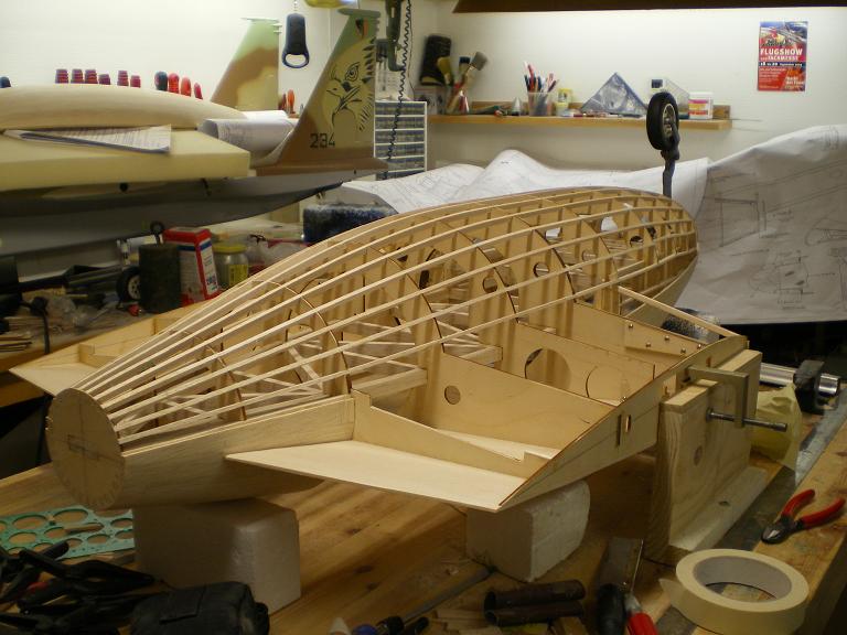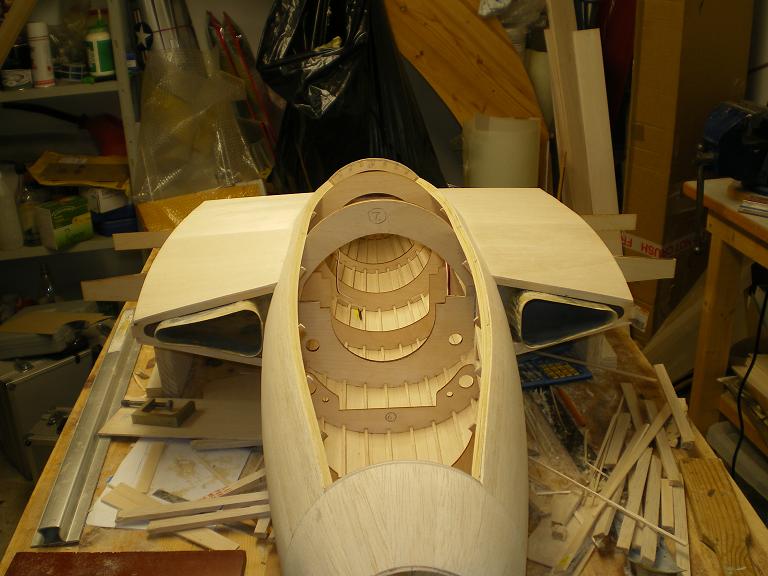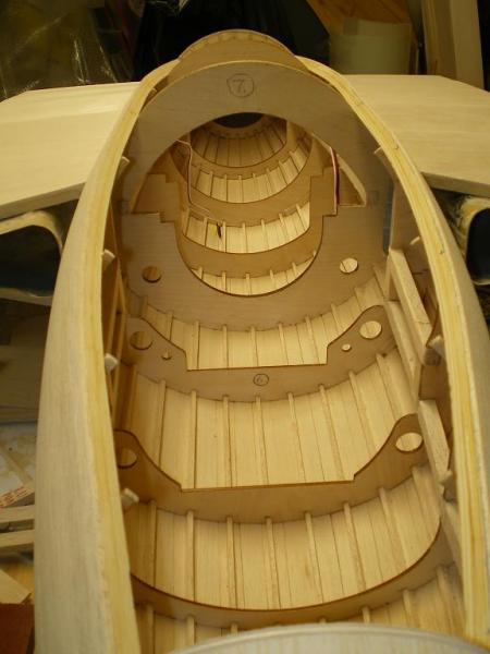 Alla "stringers" är nu på plats i botten...som nu vändar uppåt.....