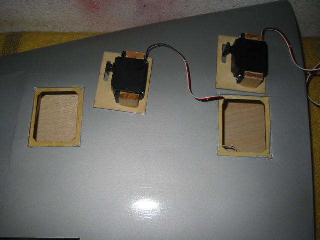 efter upptagning av hålen i vingarna ströks klädseln fast i kanterna,detta för att sitta ordentligt fast.servoluckorna passade som handen i handsken.Tar sin lilla tid att fixa sådant här.3timmar totalt för fyra servon.