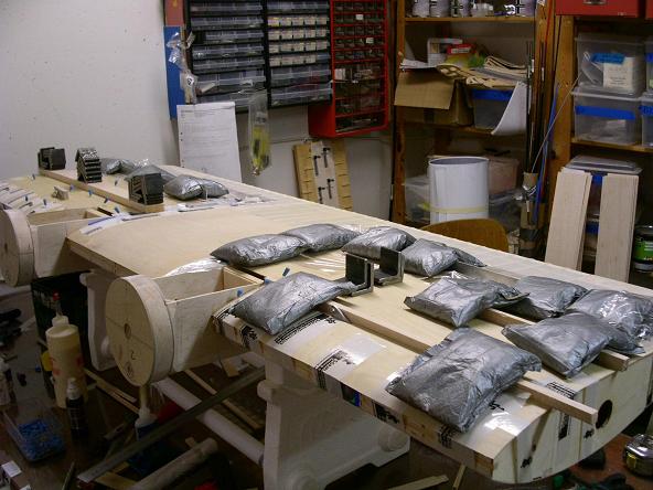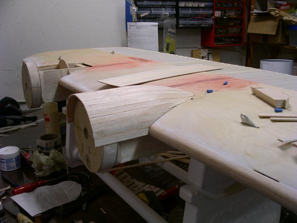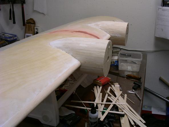 Så var det dags att börja planka motorgondolerna. Men först behövdes det några spant.