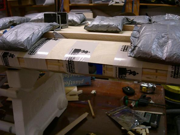 Då är mitt sektionen klar för att kläs med 25 och 50 grams glasfiberväv.