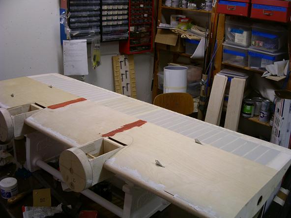 Plankningen på mittendelen av mittsektionen av vingen har kommit på plats. Precis när jag hade allt på plats så fick jag en känsla av att jag hade glömt något. Och visst...det hade jag givetvis...