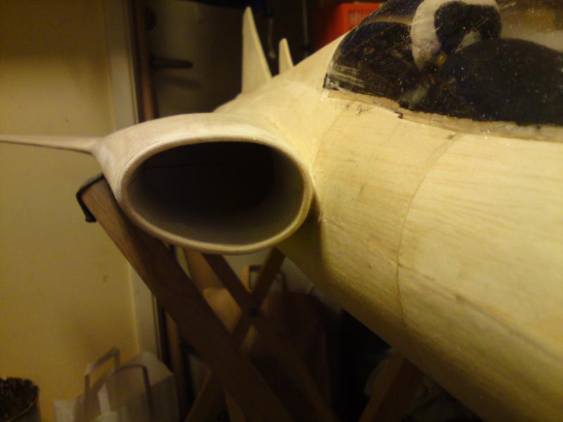 Nu har jag limmat på balsa och slipat så det blir rundat och fint, sedan har jag öst på med Ca-lim så att kanten blir stenhård.