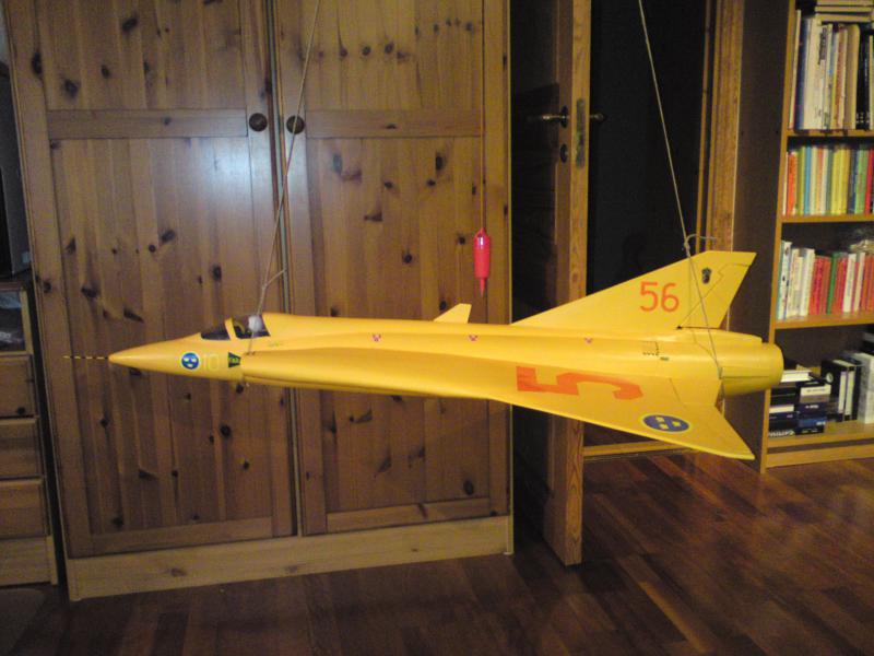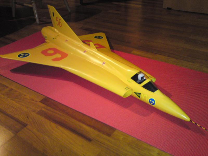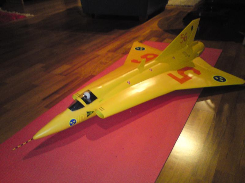 Grattis till snyggt bygge och målning. Kommer nog att synas bra i luften. Jag var med när den gula draken flög vid 3:e div F10 gravöl 98 tror jag. Har en stor bild av den i snickarbo med ca 80 Draken piloter stående runt om. Vad har Du för ackar? Mvh Uno.