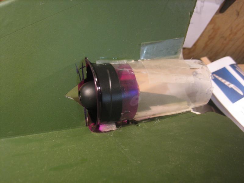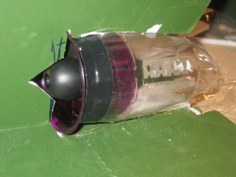 Yepp, jag rullade en OH-film och limmande med CA-lim. Den är mindre i utblåset än vid fläkten, jag höftade fram minskningen...