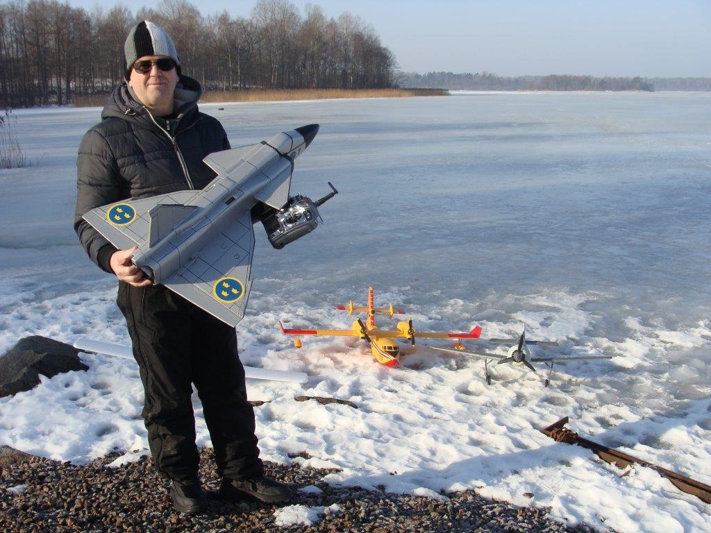 Jag var på isen i helgen med kompisar och skulle maida den, den var omålad så när som lite gult på vingarna för jag skulle se den lite bättre. En kompis kastade den åt mig och det blev dramatiskt direkt, den hade så dålig ork, men jag kunde vända den mot stranden med nöd o näppe, det blev en snygg landning med hög nos i snön. Tittade lite på den och såg snart att utloppsducten hade släppt i en kant och täppte till utloppet.