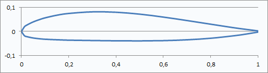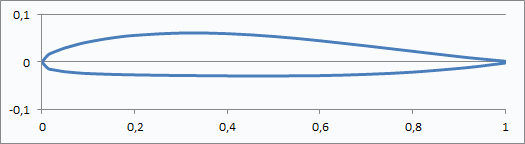Det blev en NACA 2414-profil, kanske lite väl tjock kanske för en 'räserkärra', men jag prioriterar nog bra flygegenskaper före speed.