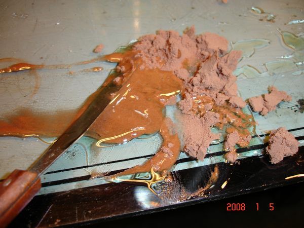 Änden på spacklet ska sluta med en vass kant "i tomma intet", alltså är styrka ett krav så kanten inte bryts av.